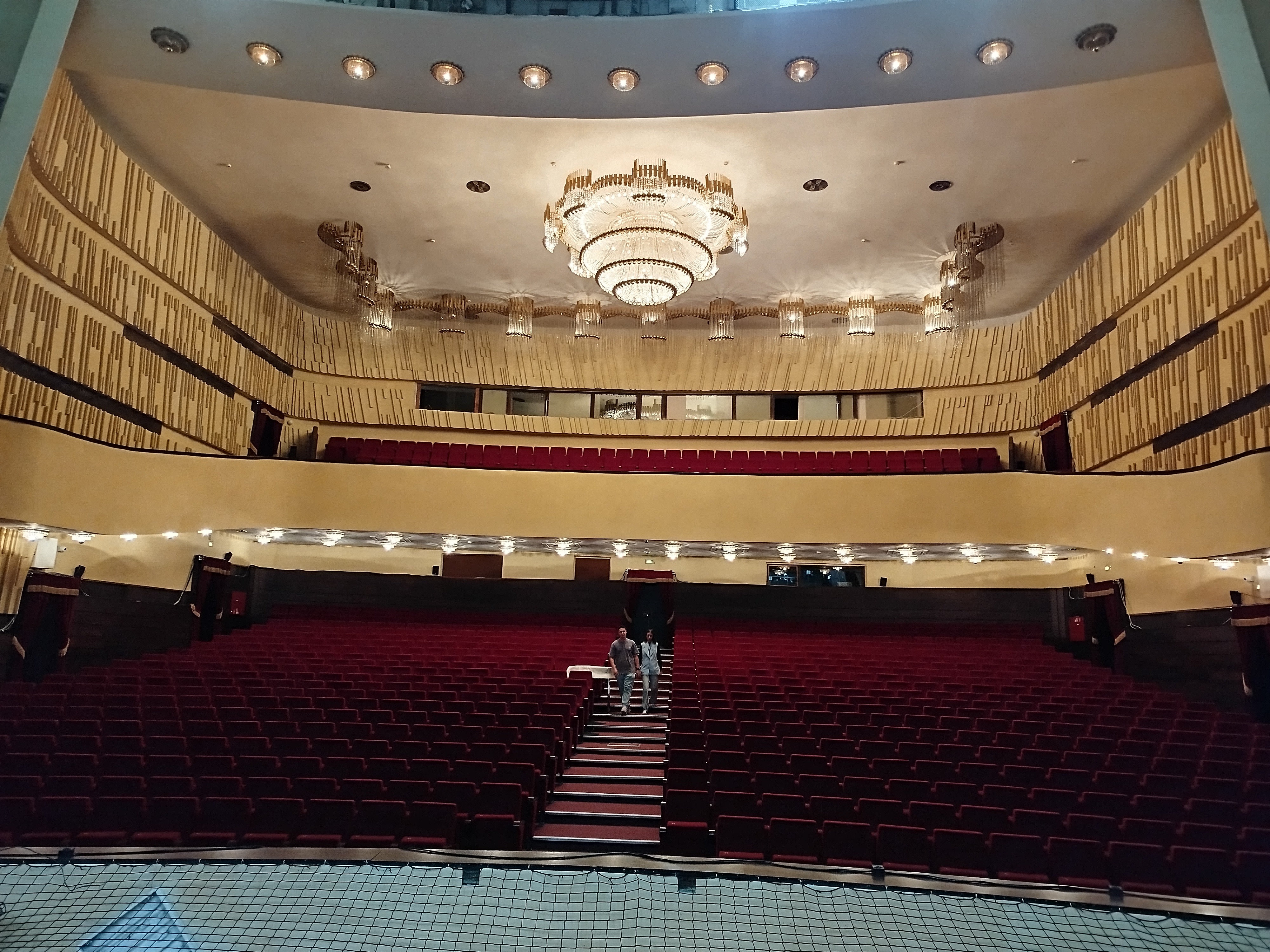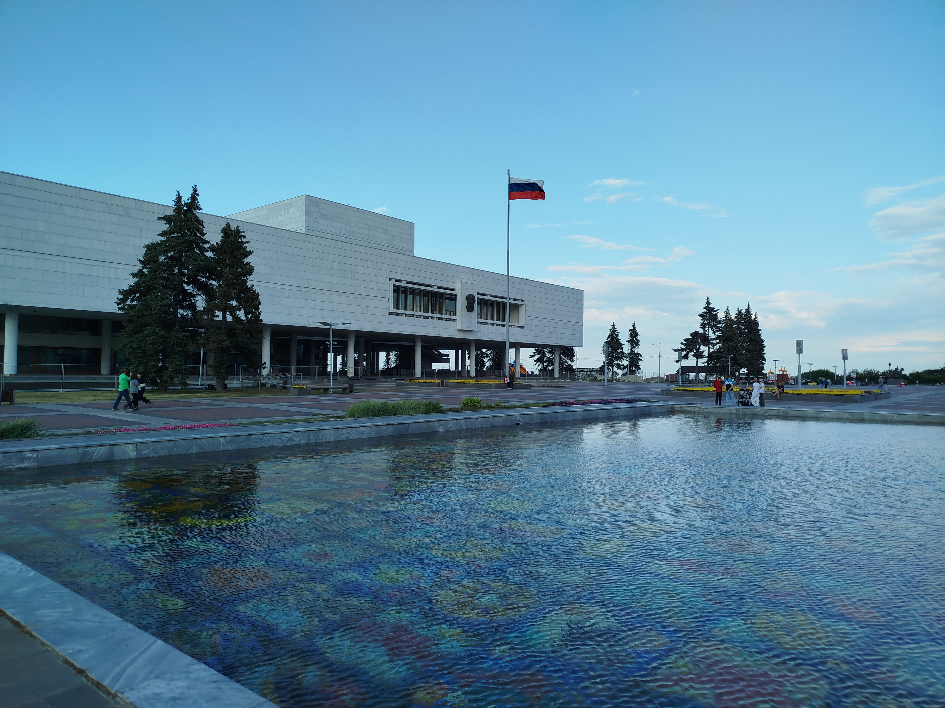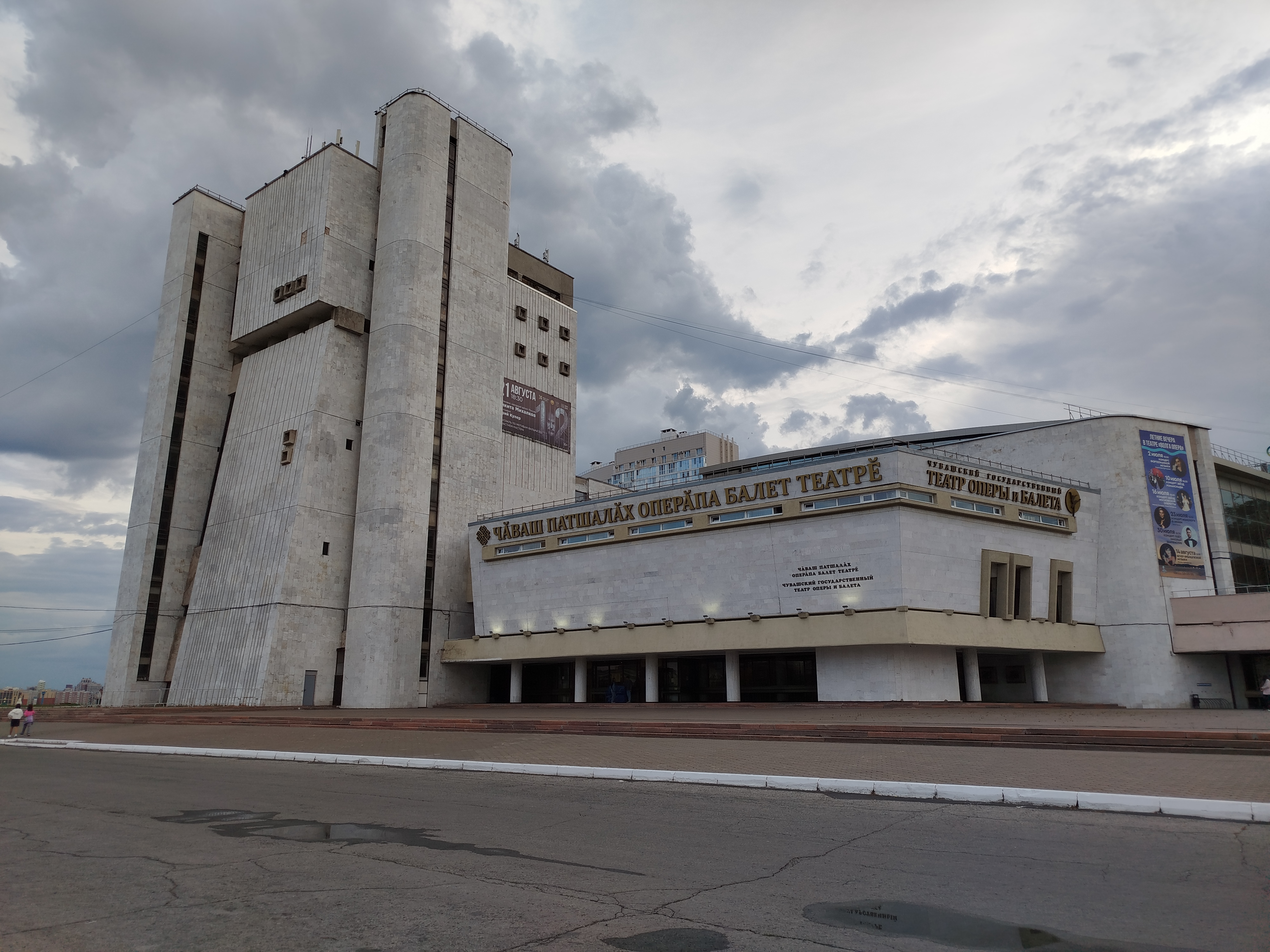 Когда я поняла, что не смогу съездить ни на какие экскурсии за пределы города, я подумала, что неплохой идеей будет сходит в театр — тем более, что в Чебоксарах несколько театров и есть Чувашский драматический театр, где спектакли идут на чувашском языке. Однако все театры ожидаемо оказались закрыты — в августе театральный сезон еще не начался. Но мне повезло, и совершенно случайно я нашла экскурсию по закулисью в Чувашском театре оперы и балета. Она стоила 440 ₽ (билет покупала на «Яндекс Афише») и оказалась очень милой. Само здание Чувашского театра оперы и балета, построенное в 1985 году, выглядит довольно монументально и впечатляюще.