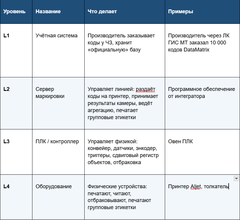 Система маркировки на производственной линии — это не одна программа, а четырёхуровневая архитектура. Понимание этих уровней — ключ ко всему проекту (см. таблицу в конце статьи).