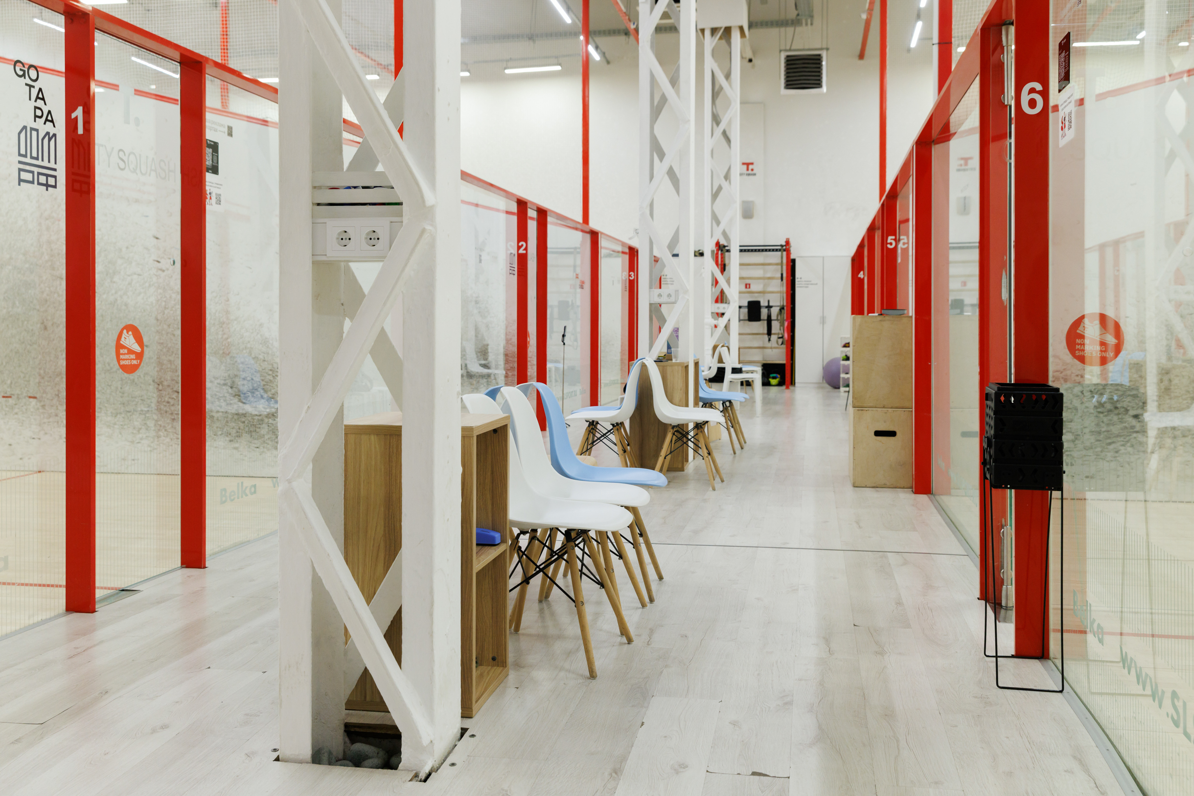 Смотрели разное: и промзоны, и торговые центры. С промзонами все понятно — высокий риск сноса. У ТЦ другая проблема: помещения часто не подходят по конфигурации. Для сквоша нужна площадь от 800 м², высота потолков от 5,6 метра, шаг колонн от 7 м. Бывает, по метражу все сходится, но корты просто не встают или получается неэффективная планировка: поставишь корт — и остается полтора метра ни туда ни сюда, ничего там не сделаешь, а платить за них все равно придется.