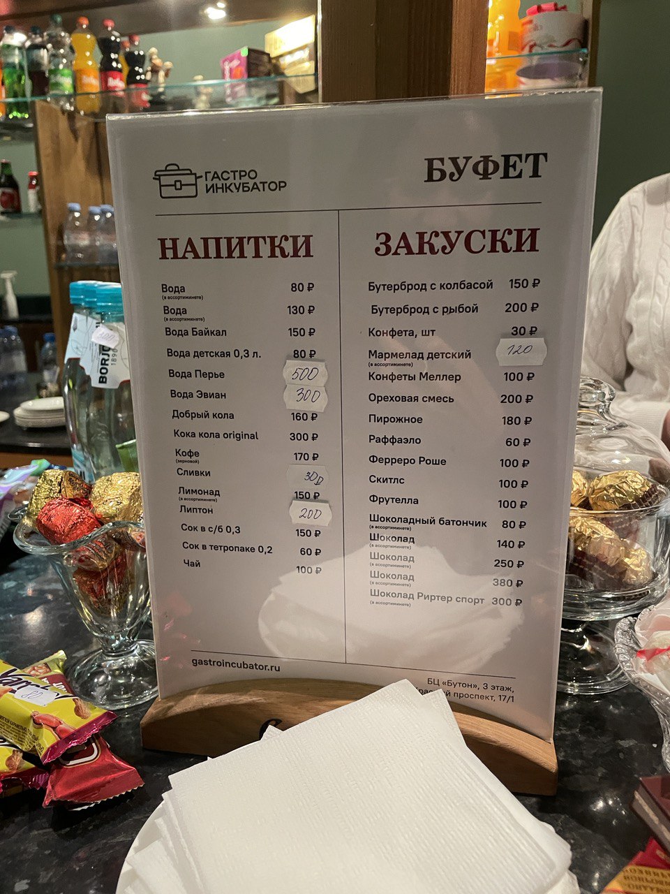 Кстати, посмотрите на фото, как отличаются цены от московских в буфете) голодными не останетесь.