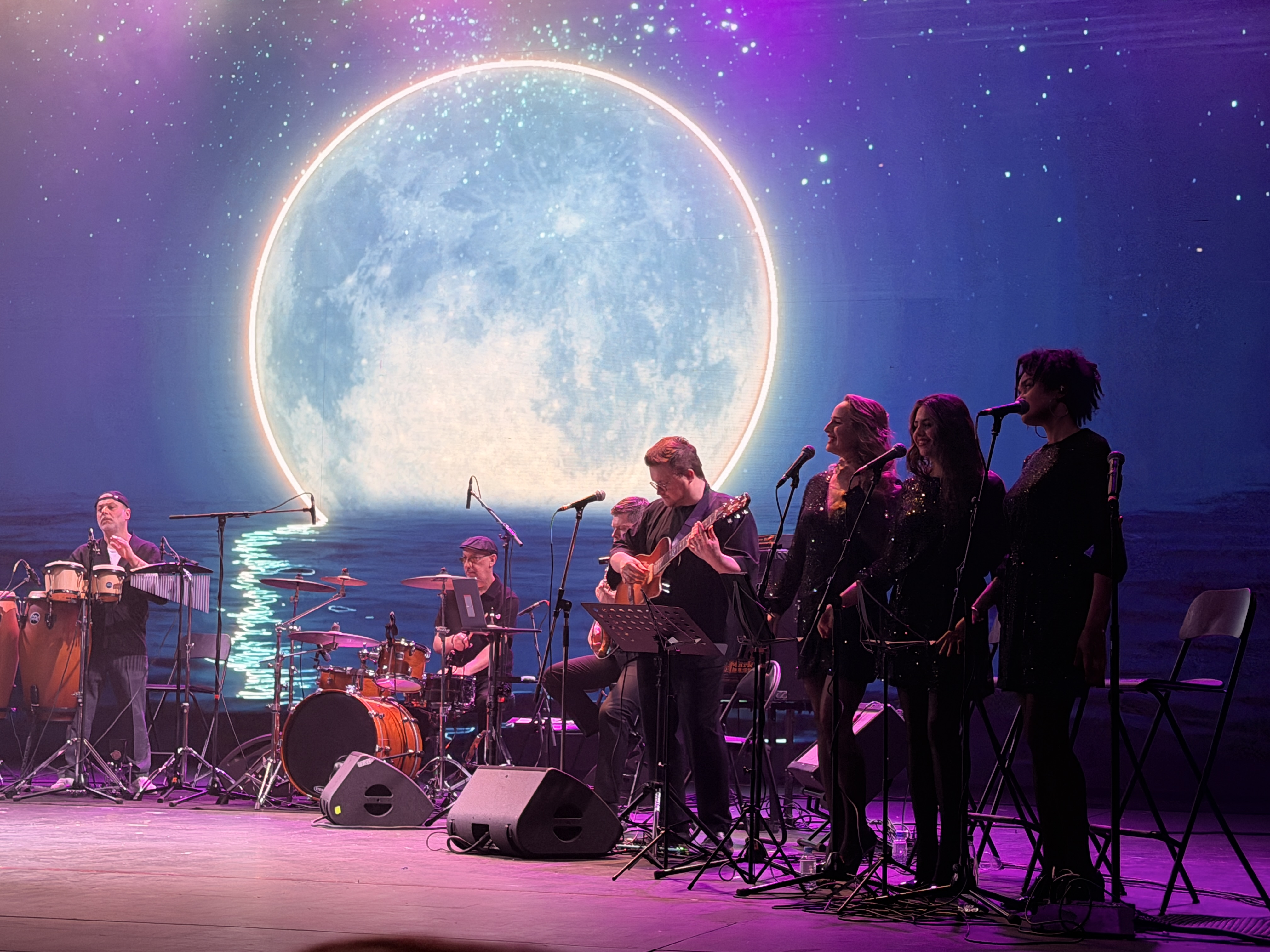 Удивительно было наблюдать за видео рядом на фоне артистов. Часто это были морские берега, закаты, Луна, океан, звезды. Романтично. При этом мне немного резало глаз, что видеоряд создан искусственным интеллектом, красивый, правда не живой.