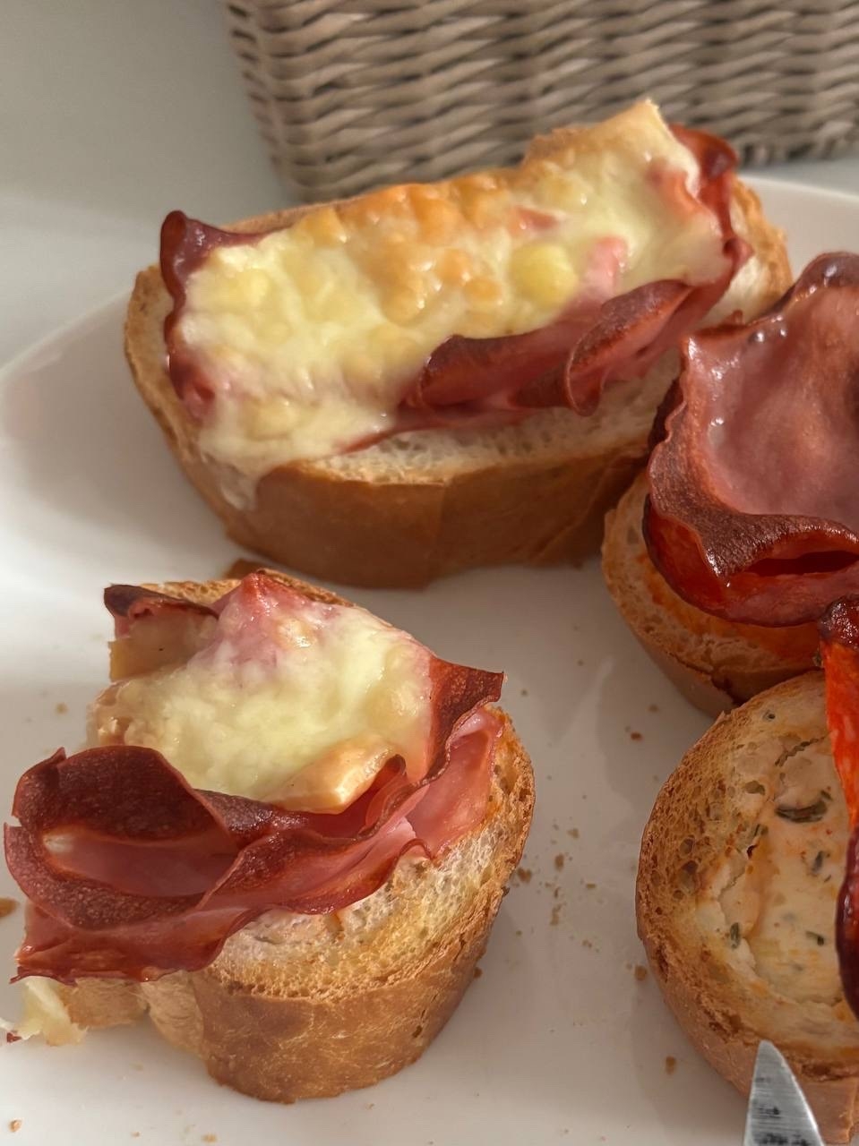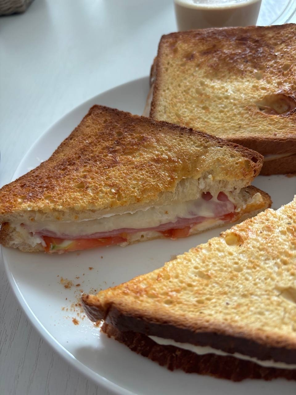 - Множество горячих бутербродов и сэндвичей — для меня это навсегда самый идеальный вариант позднего завтрака. Классический рецепт — два хлеба, смазать творожным сыром, выложить нарезанные помидоры, много колбасы / ветчины, несколько ломтиков сыра, сложить это все и обмакнуть в яйцо, чтобы хлеб вкуснее запекся. Еще по-всякому делал, просто не фоткал — и с испанской колбасой, и просто с сыром. Очень неплохо все они получаются.