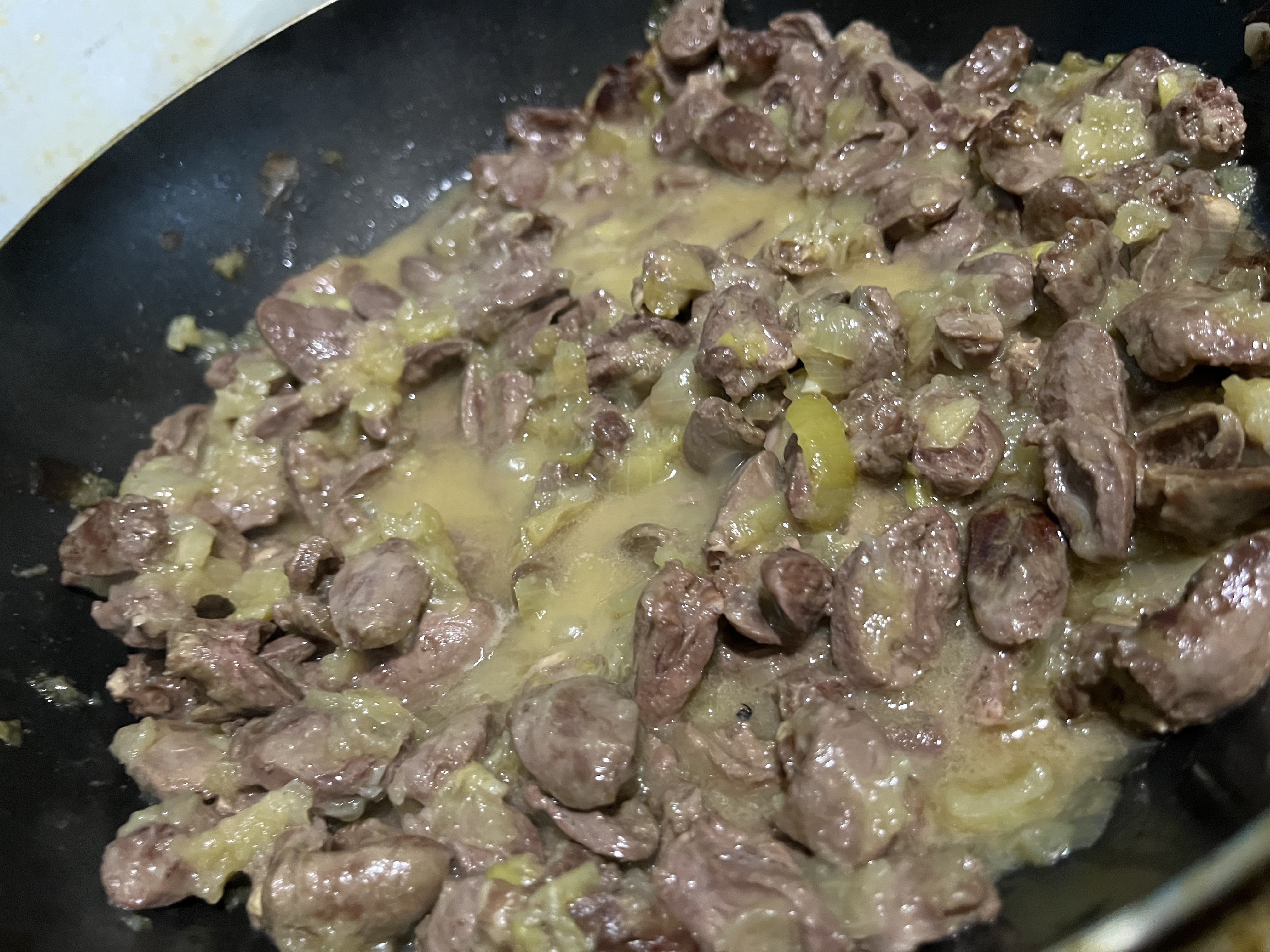 Куриные сердечки, тушеные в сметане