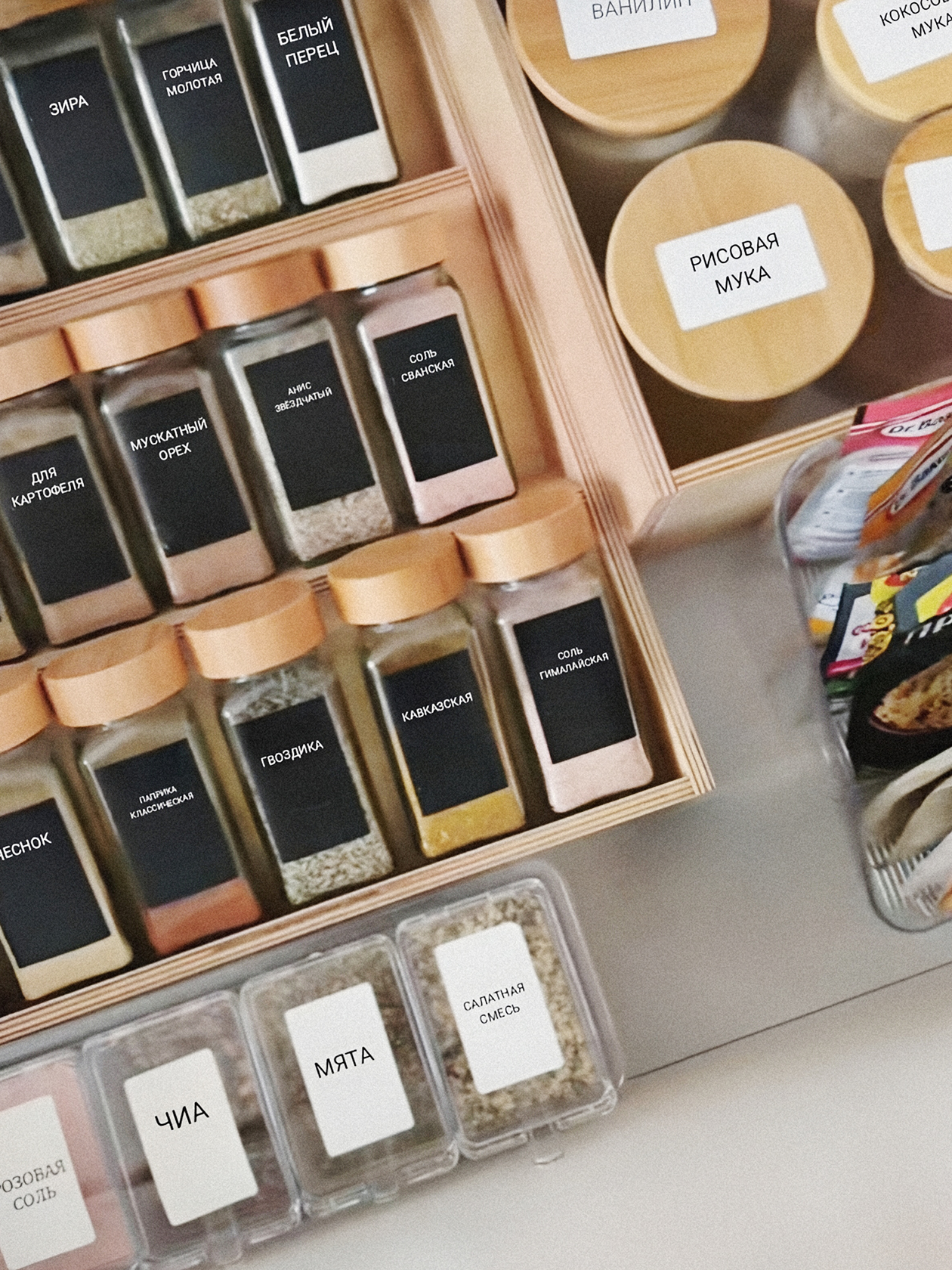 Начинала с бакалеи, потому что это были самые хаотичные зоны. Сперва разобралась с раздражающими пакетами круп, которые вечно рассыпаются, потом со специями, затем перешла к холодильнику. В итоге втянулась и поняла, что контейнеры — это как теплые носки: когда попробуешь, уже не хочется обратно.