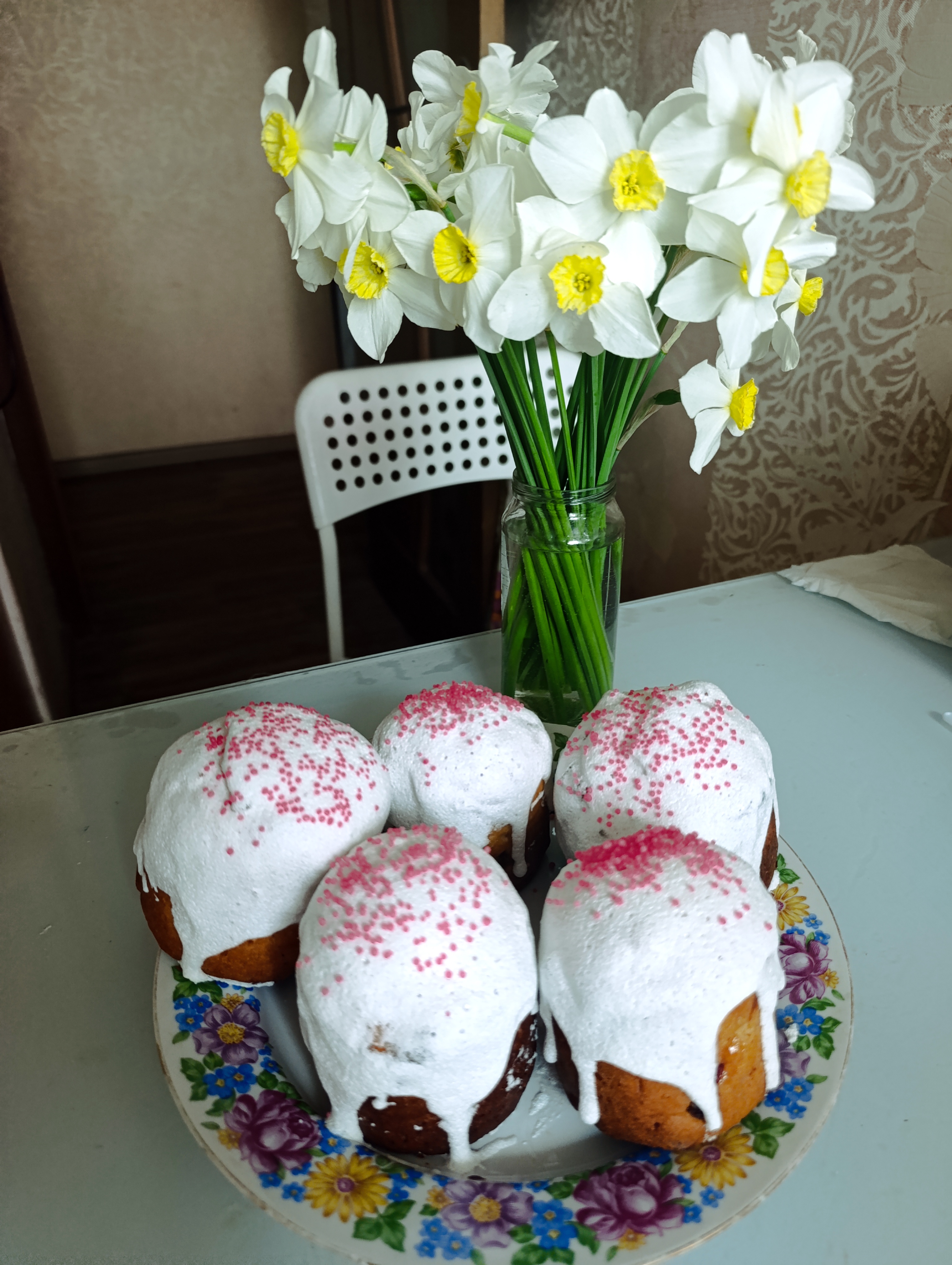 Пасха длится 40 дней, сейчас идёт вторая неделя, и мы всё ещё печём куличи. Но в нашей «дяревне» в магазине возле дома смели всю посыпку:) Я задумалась: чем же украсить, чтобы было красиво? И нашла выход.