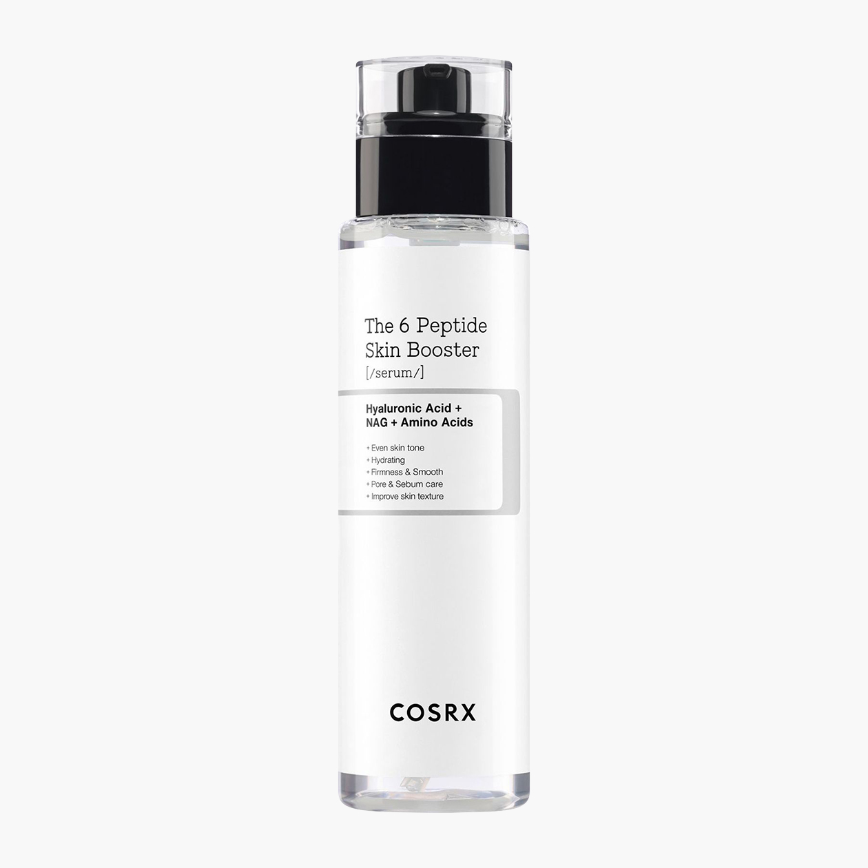 Cosrx The 6 Peptide Skin Booster Serum. Кремы я не использую. Отказалась от них несколько месяцев назад, потому что не нравится ощущение пленки на лице и жирный блеск. Перешла на легкие сыворотки. Покупаю пептидную бустер-сыворотку Cosrx The 6 Peptide Skin Booster Serum. Она вязкая по текстуре и впитывается в кожу не так быстро, но эффект заметен уже после первого месяца применения: кожа упругая, поры сужаются, а тон выравнивается. Цена — 2 890 ₽.