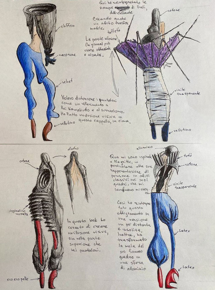 Я везде подавалась на одно направление — мода, — поэтому портфолио готовила единое. В него вошли старые работы для МАРХИ, несколько проектов с подготовительного года в Милане и то, что сделала специально для поступления.