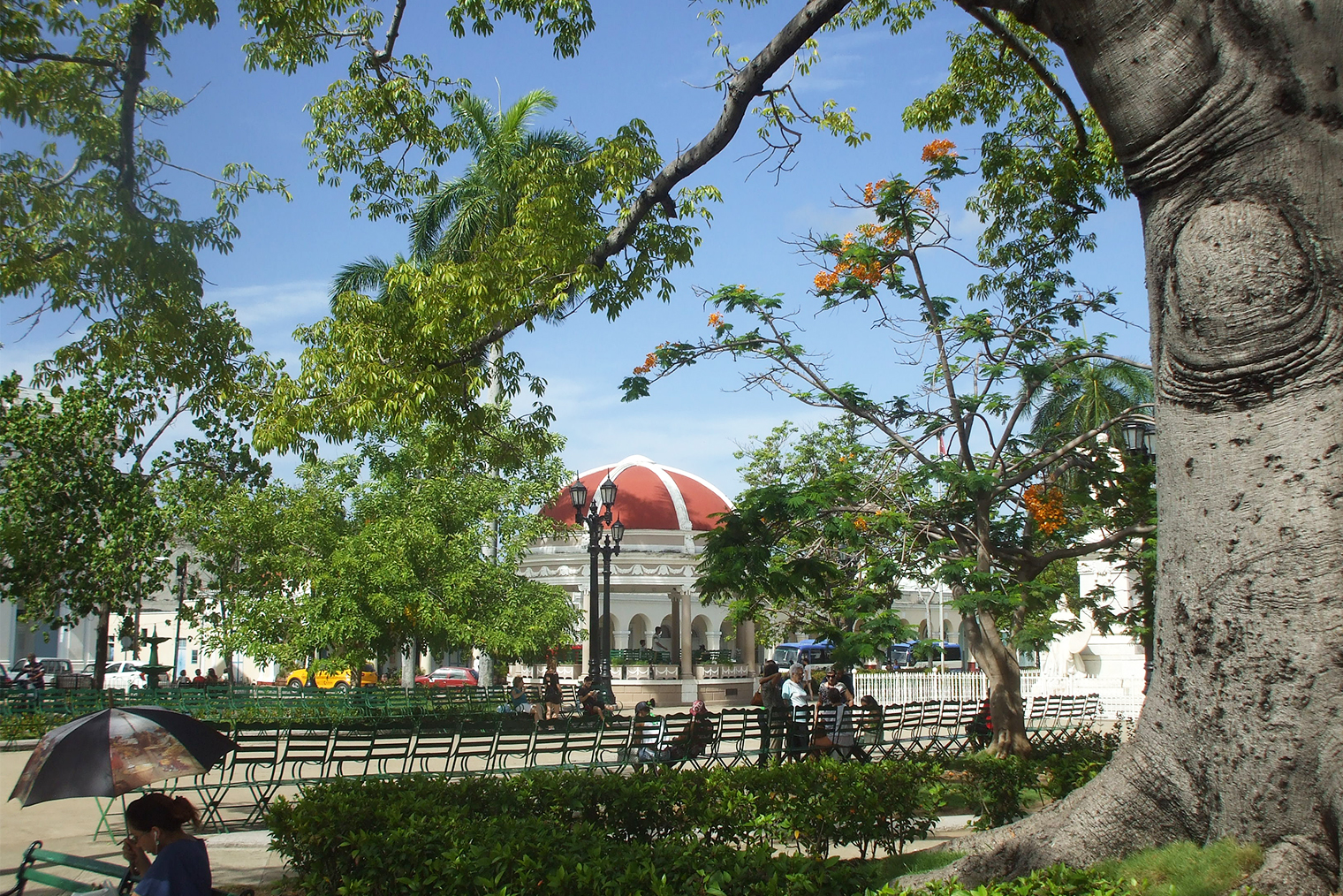 На главной площади Плаза-де-армас (Plaza de armas) расположен собор Непорочного Зачатия. Его построили в 1869 году. В центре площади — живописный парк имени кубинского героя-революционера, писателя Хосе Марти. В парке есть памятник ему. Еще там можно попробовать вкусные блюда из морепродуктов, посмотреть на огромную сейбу — священное для кубинцев дерево — и купить открытку с видами Кубы.