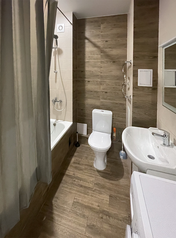Отдельный туалет и ванная. Они точно есть, в отличие от некоторых отелей и хостелов, где санузел может быть один на этаж. При этом ночь в квартире стоит столько же или дешевле, чем одноместный номер без индивидуальных удобств или место в хостеле.