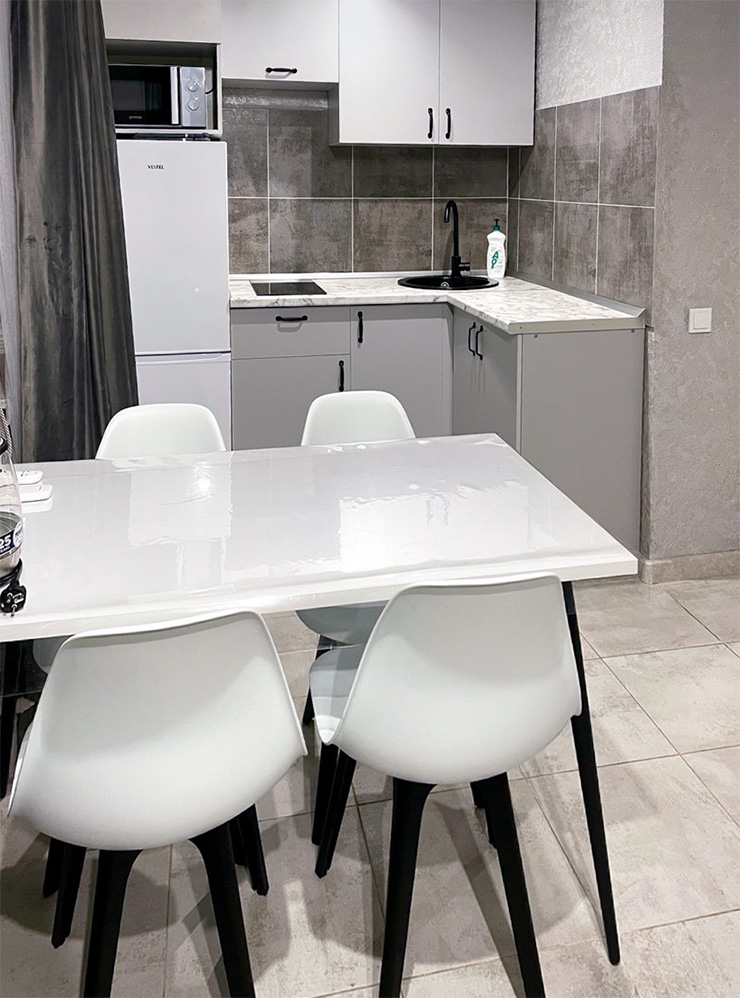 - В квартирах посуточно больше площадь, чем в гостиничных номерах, всегда есть индивидуальная кухня и ванная. На кухне часто стоит раскладной диван, что удобно при путешествии компанией или для семьи с детьми.