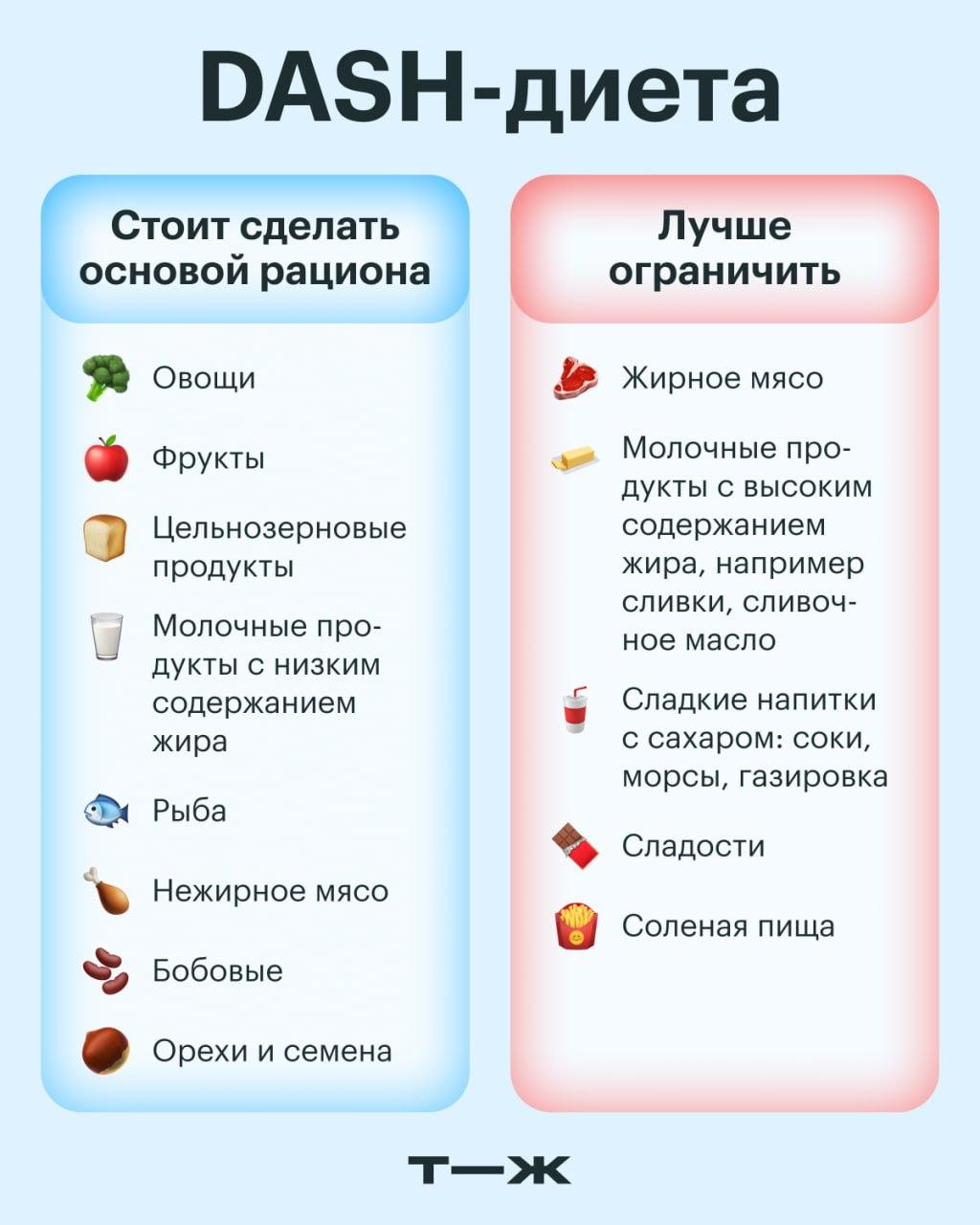 DASH-диету рекомендуют крупные медицинские организации, так как она помогает поддерживать здоровый вес и снижает долгосрочные сердечно-сосудистые риски, а еще ее можно соблюдать постоянно — хоть всю жизнь.