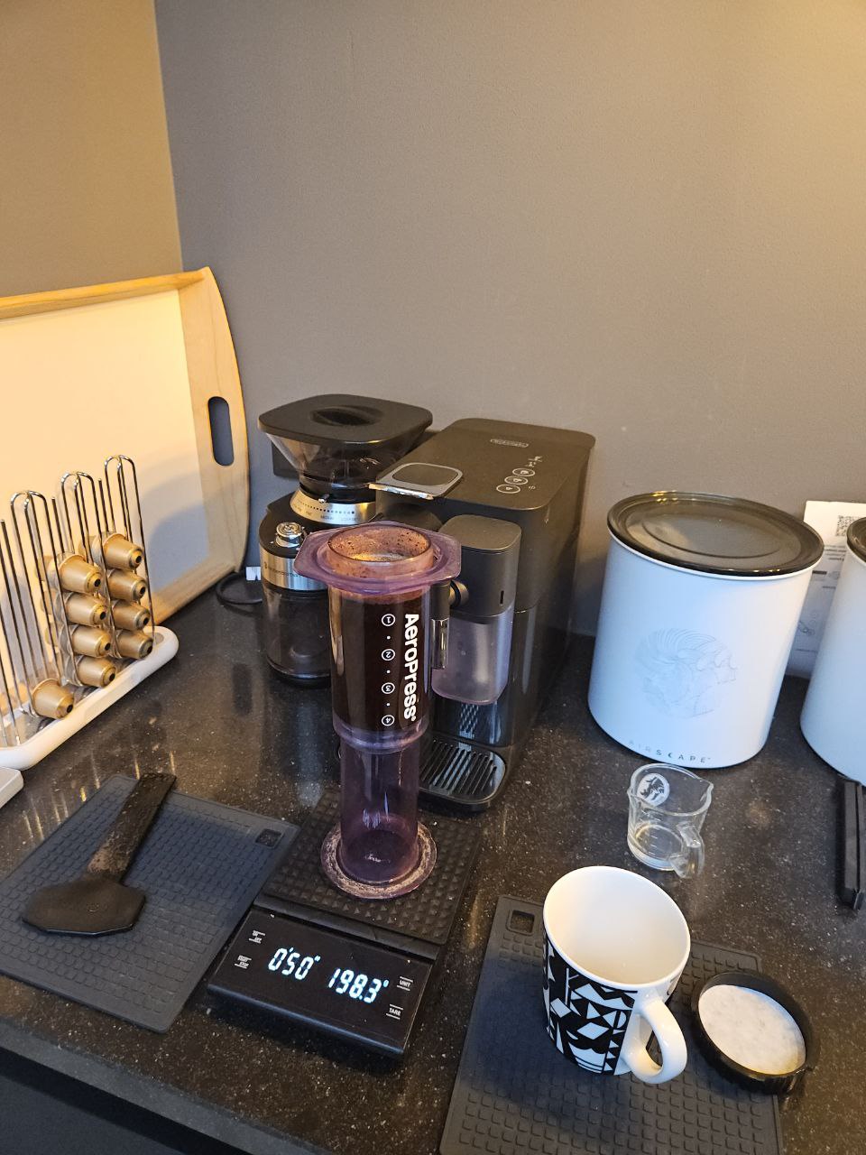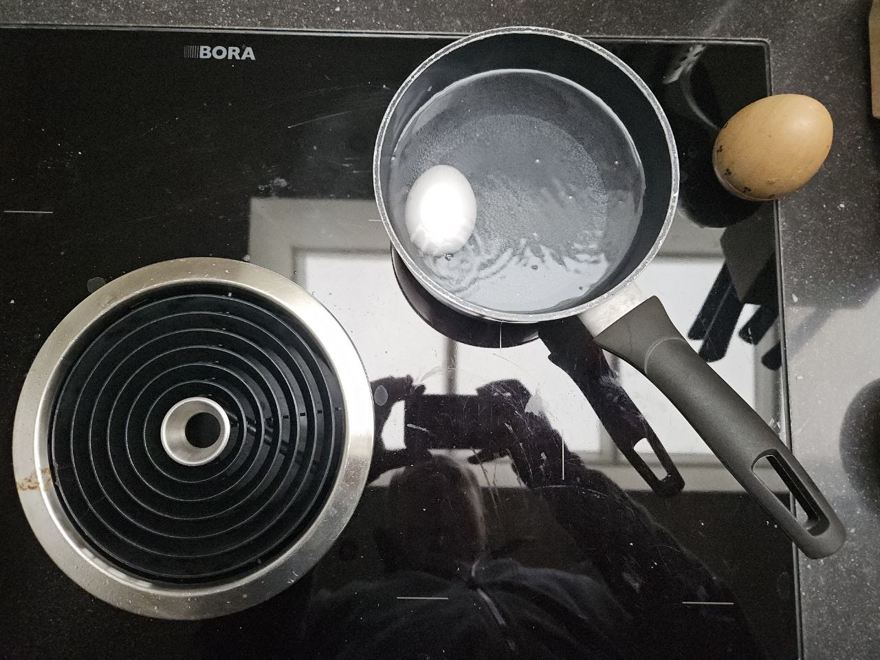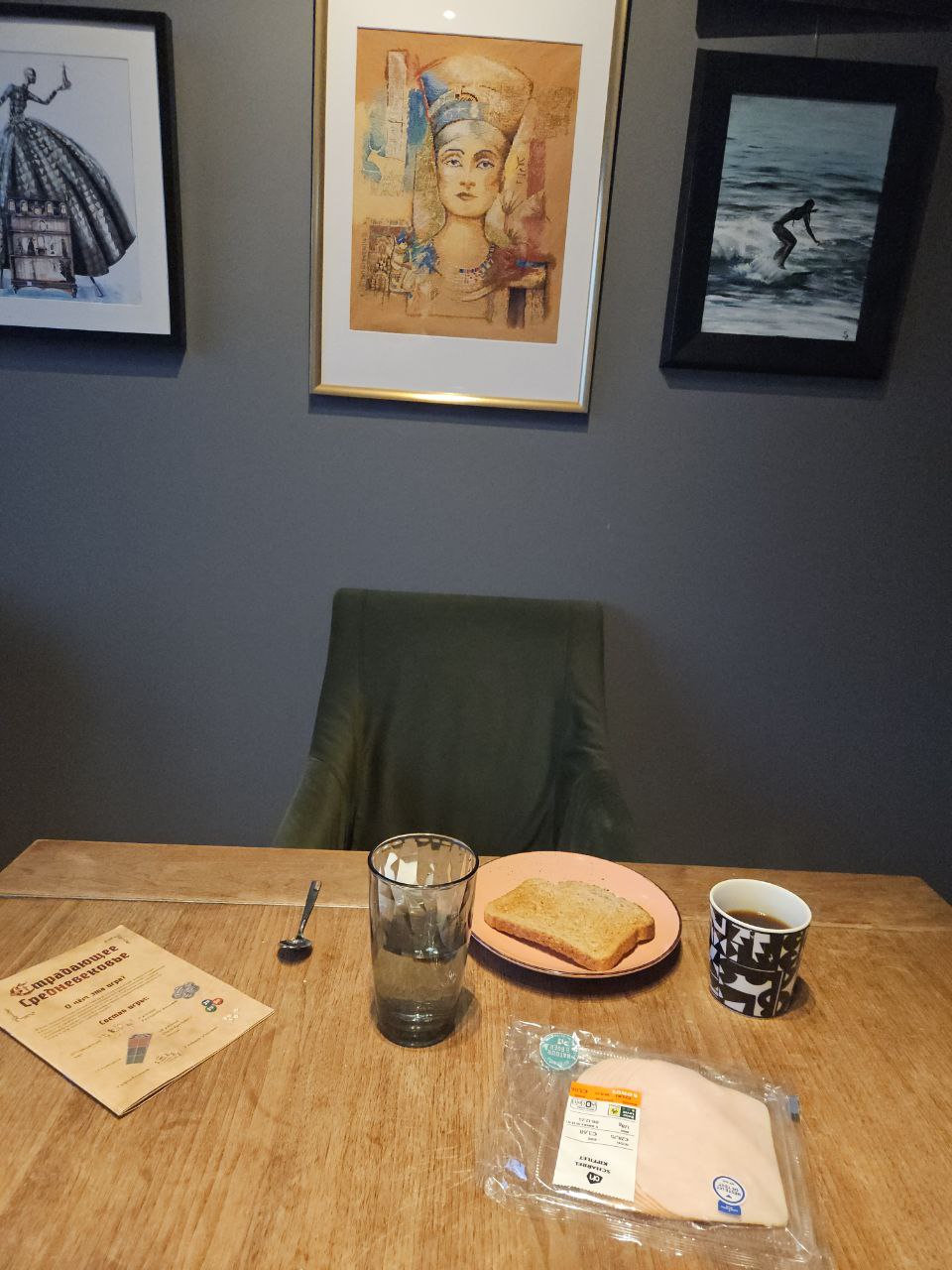 Обычно мы просыпаемся около 7-8 часов, но в этот день Катя в отъезде, и я досыпаю почти до 9 утра. Водные процедуры проходят под нетерпеливым взглядом кота. Далее первым делом кормлю его, потом — себя. Завтрак у меня довольно стандартный: яйцо всмятку и тост с нарезкой. Кофе раньше заваривал в кемексе, но недавно перешел на аэропресс.