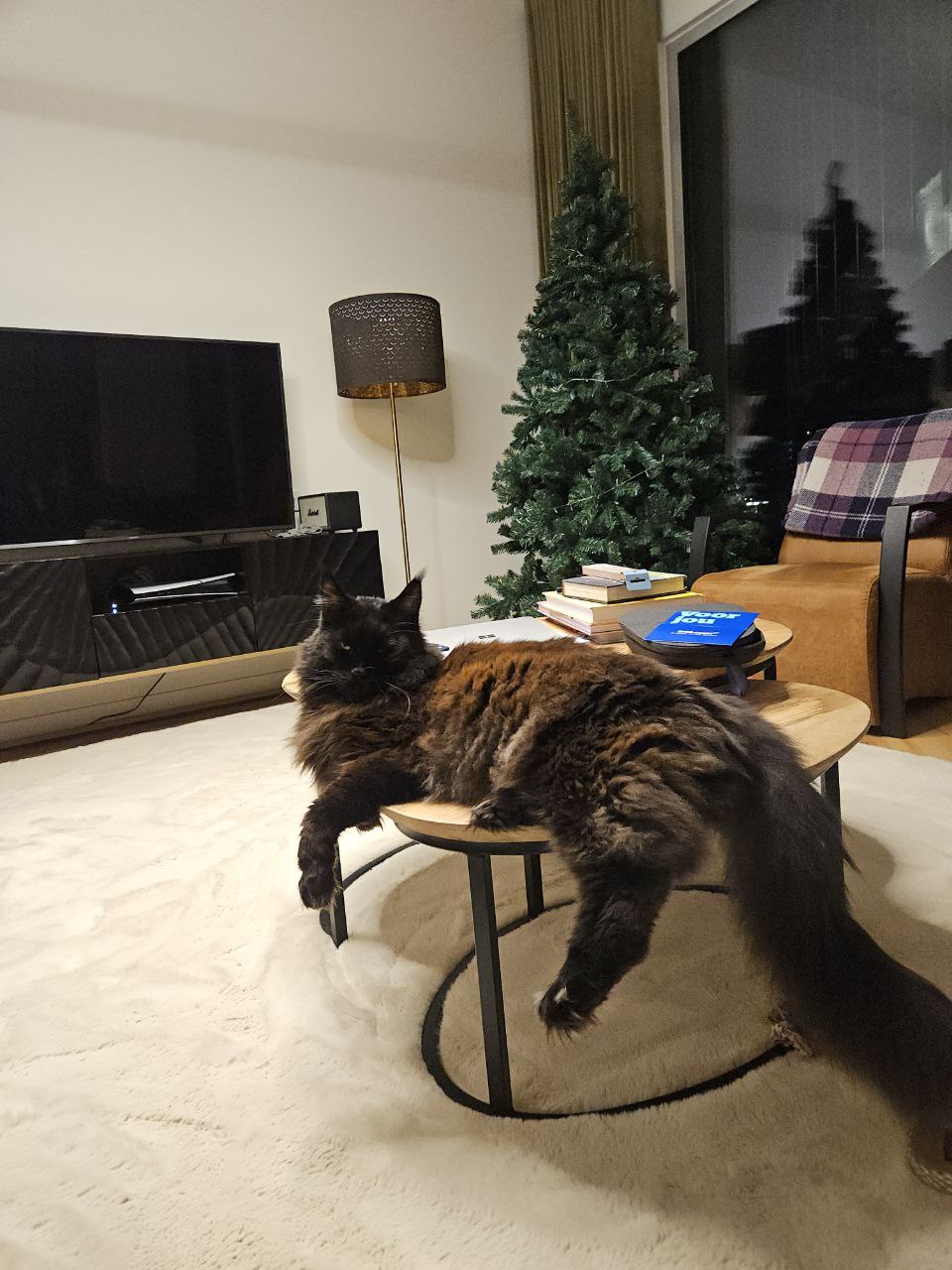 Декабрь — время разных предрождественских мероприятий, и мы с женой идем на формальный ужин клуба выпускников ее университета. Смокинг вместе со всем костюмом в Амстердаме можно довольно легко арендовать, но если надевать его хотя бы пару раз в год, уже окупается покупка своего. Домой возвращаемся ближе к 23 часам совсем без сил и попадаем в засаду оголодавшего кота. Задача со звездочкой — успеть переодеться, пока он ест, чтобы не насажать шерсти на смокинг.
