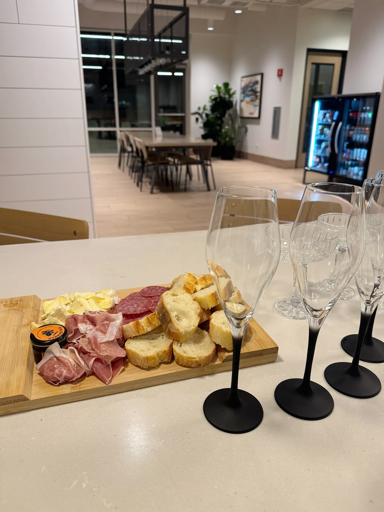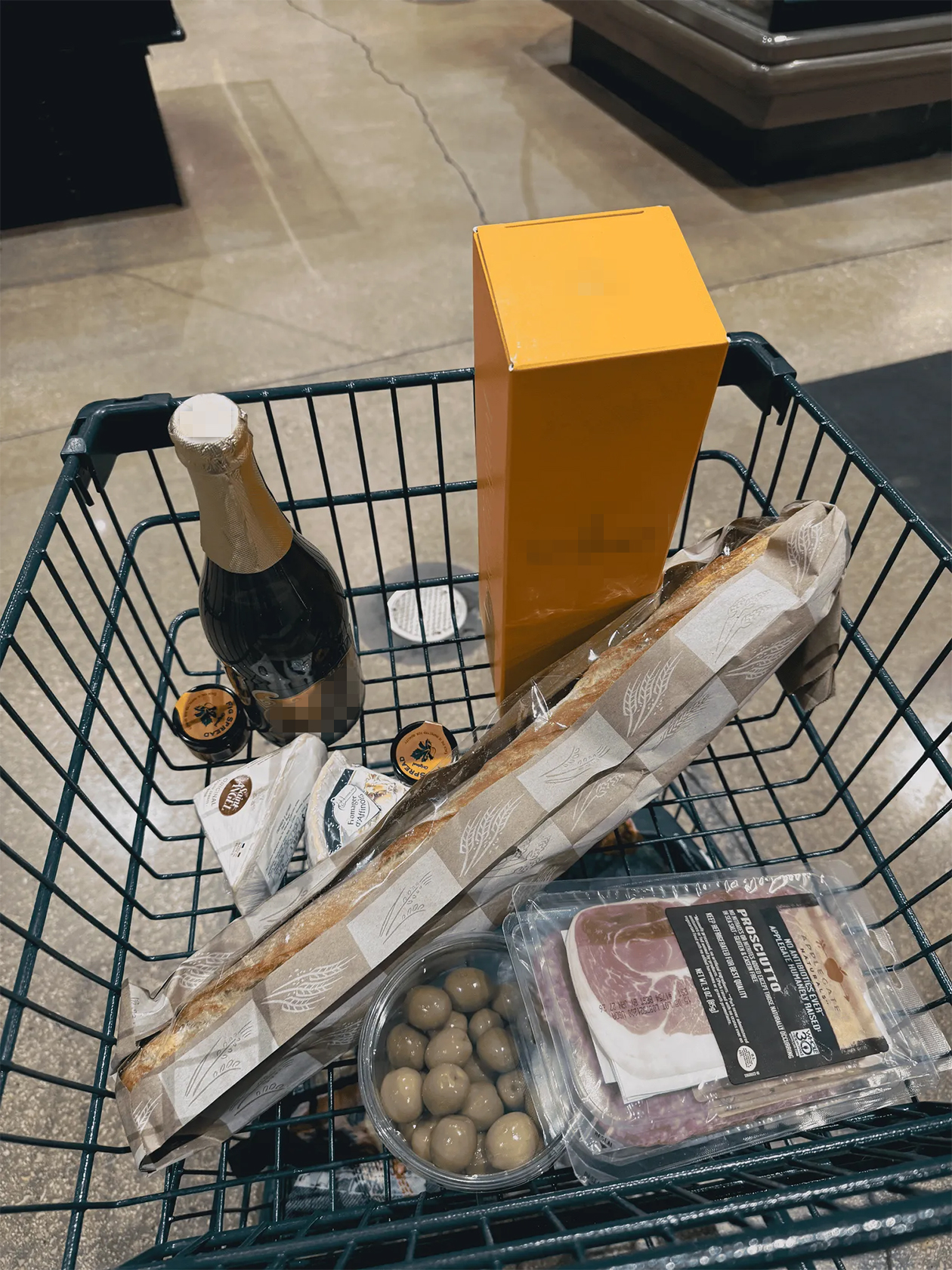 В магазине взяла сыр, оливки, багет, инжирное варенье, шампанское, пиво и мясные закуски