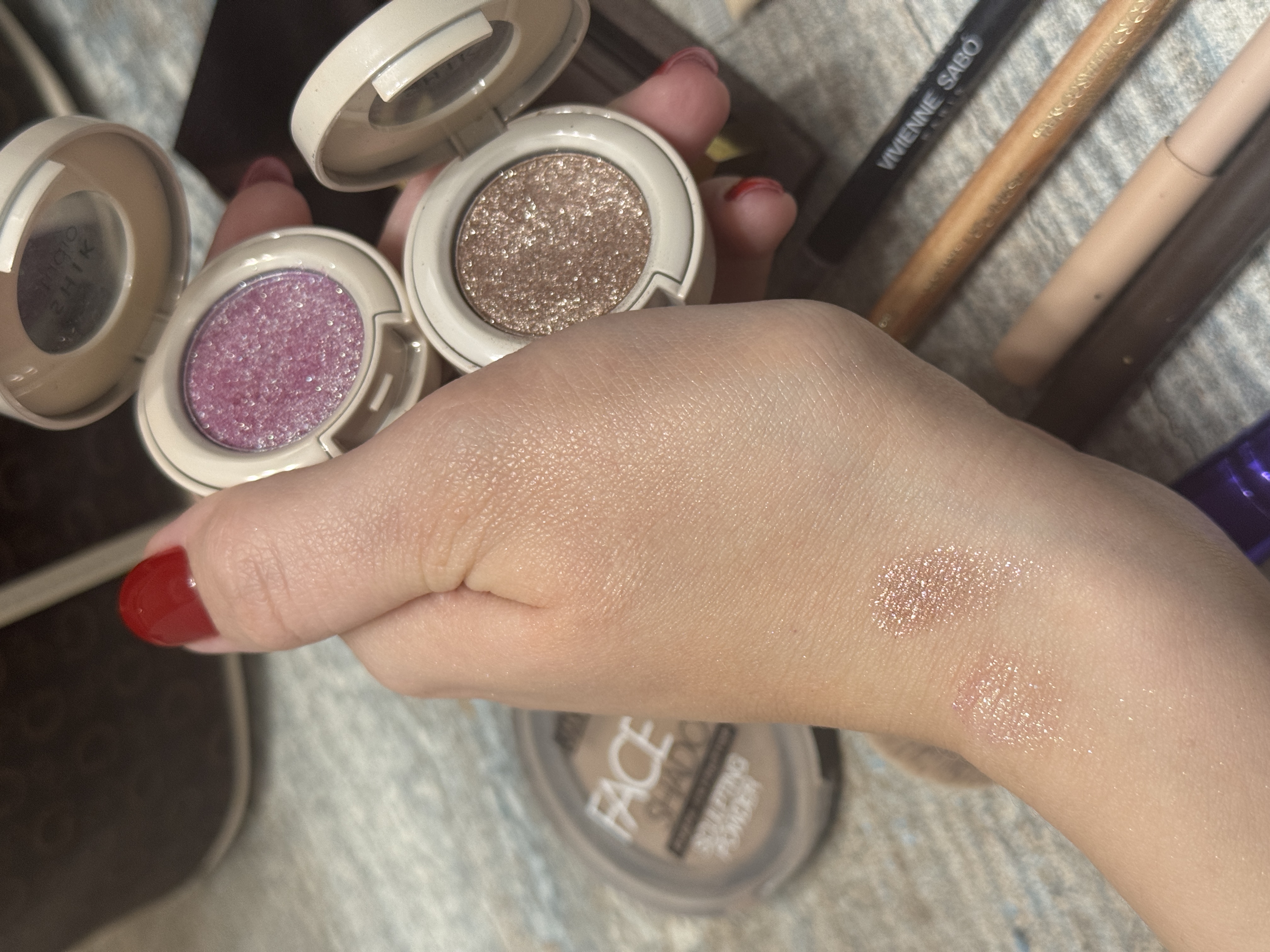 - Спарклы от шик — у меня оттенок вега и мимоза. Использую их когда крашусь на мероприятия, вот недавно ходила на свадьбу к друзьям. Но стойкость на пару часов. Возможно я не так их фиксирую.