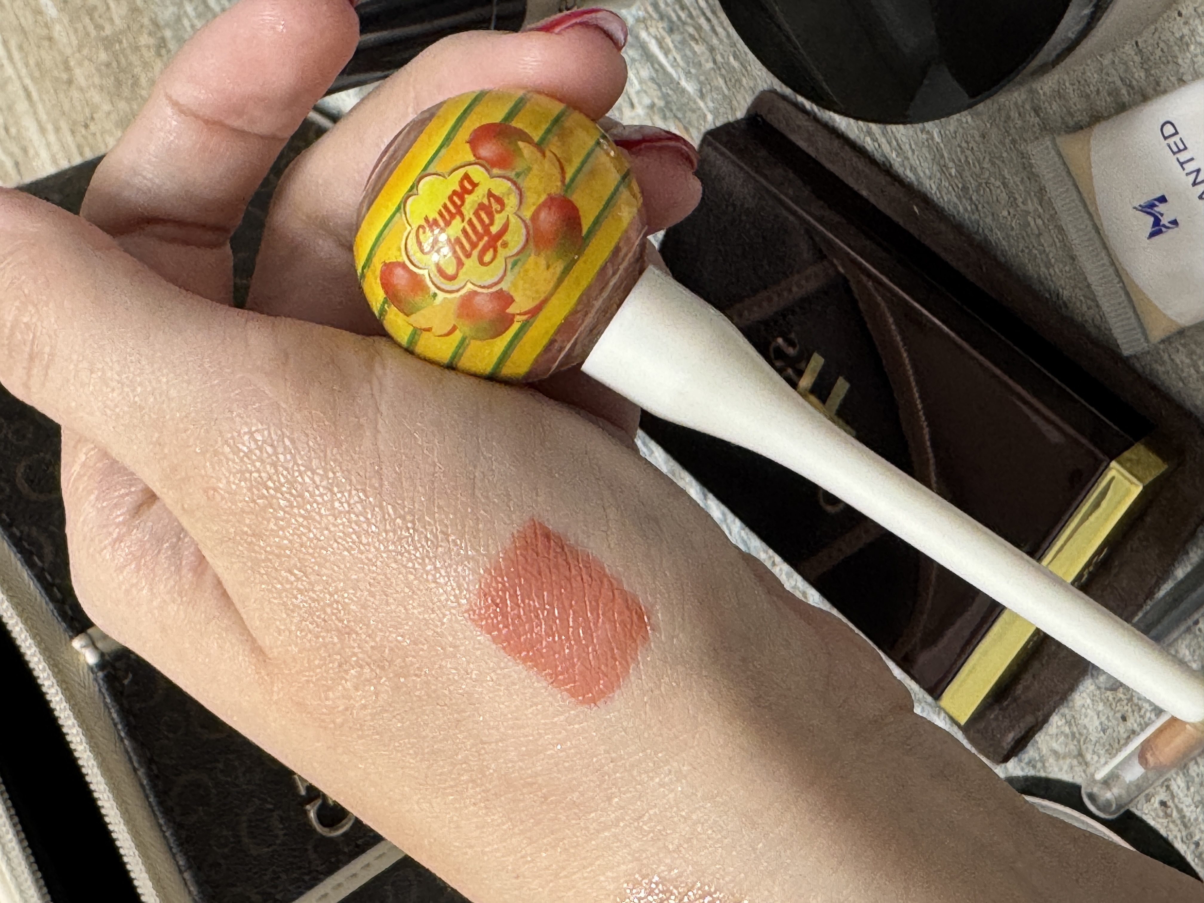 - Жидкие румяна — CHUPA CHUPS lip locker, оттенок персик. Универсальный продукт, можно использовать на губы и на глаза.