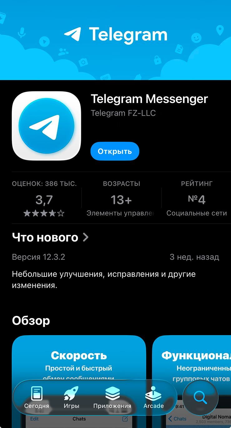 После этого останется только скачать «Телеграм» заново из App Store — он доступен в российском каталоге. При первом запуске приложение запросит номер телефона, к которому привязан аккаунт, одноразовый код подтверждения и облачный пароль, если он установлен.