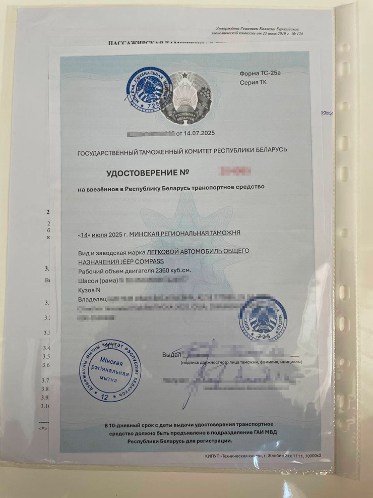 На следующий день прислали пакет документов в мессенджер: квитанцию, приходный ордер, таможенную декларацию, удостоверение на ввезенное средство.