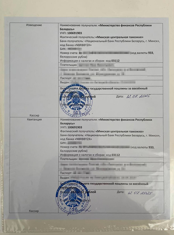 Полную сумму за автомобиль сразу никто не требовал. Первую часть нужно было заплатить после прохождения таможни на границе с Беларусью, вторую — за утильсбор в России.
