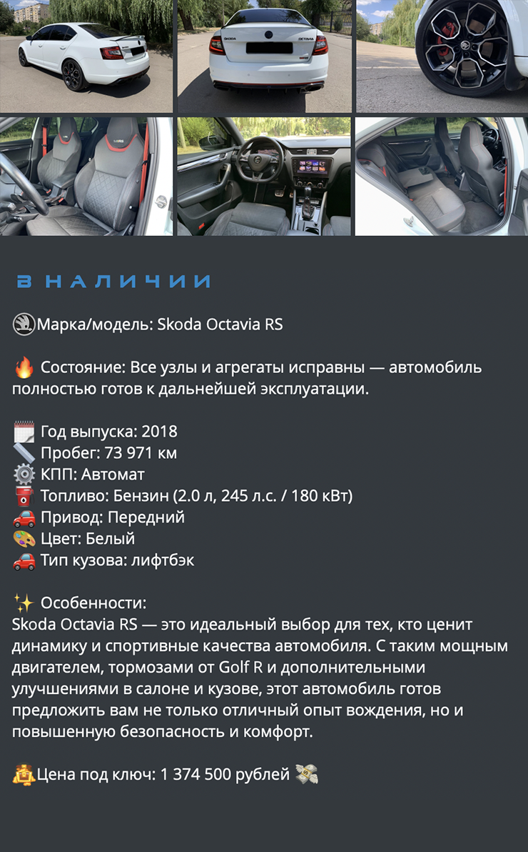 Помощника в покупке машины за границей не стоит искать на «Авито» или «Дроме» среди сотен тысяч объявлений с нерастаможенными машинами и биркой «под заказ». Ни в коем случае не работайте с фирмами, которые добавляют вас без вашего ведома в телеграм-каналы и группы — даже если там много подписчиков и довольных клиентов. Все это несложно подделать.