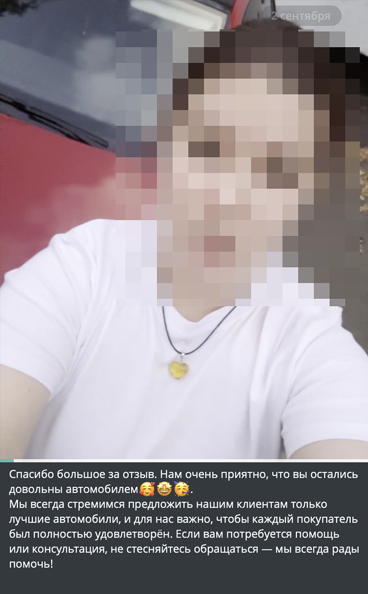 Если такого посредника нет, обратитесь к медийному автотрейдеру. Такие не скрывают настоящие фамилию и имя, регулярно появляются в кадре и общаются с клиентами и потенциальными заказчиками. Хороший признак — канал на «Ютубе» или хотя бы ролики в «Телеграме». Договор должен быть подписан именно с этим человеком. И там не должно быть манипуляций вроде штрафа за отказ от покупки.