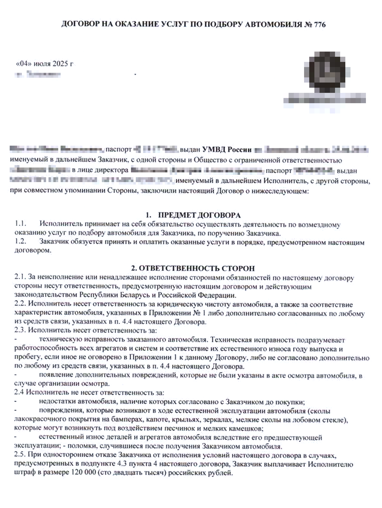 Менеджер Денис отправил договор на почту. Документ показался мне честным, так что оставалось только вовремя платить. Насторожил лишь пункт, который накладывал на меня штраф в 120 000 ₽ при отказе от покупки. Денис прямо сказал, что это помогает им застраховаться от рисков, если с автомобилем все в порядке, а заказчик передумал.