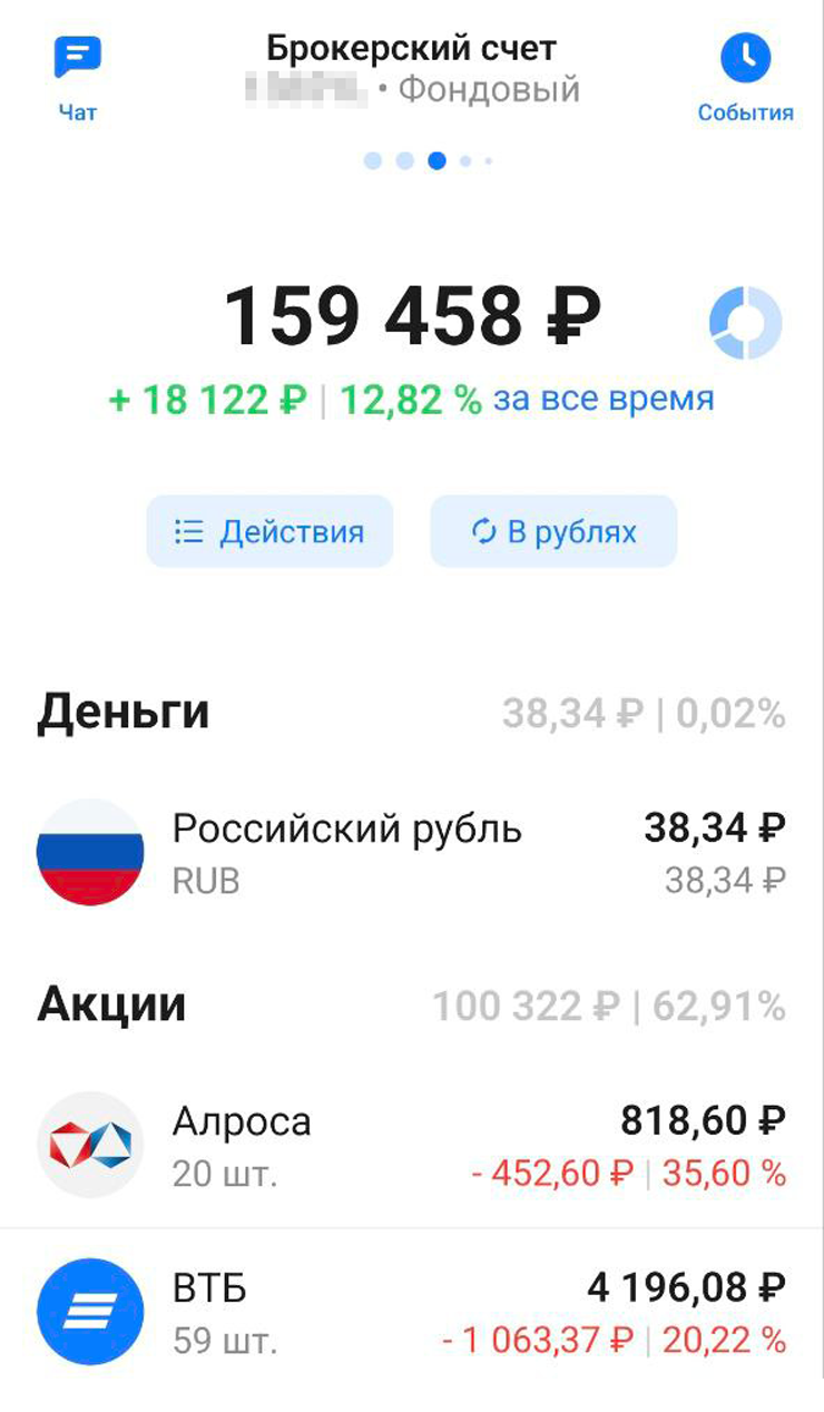 На сегодня в плане диверсификации финансов считаю оптимальным держать депозит в банке и брокерский счет или ИИС. Хотя в целом инвестиции не приносят ощутимого дохода — он точно меньше процентов по депозиту, — серьезных провалов у меня не было.