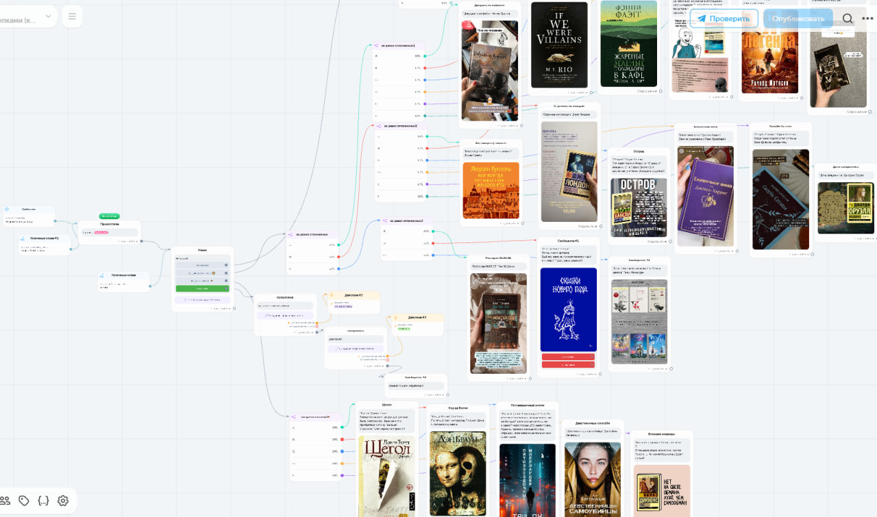 Для бота с книжными подборками я нашла другой бесплатный конструктор для тг-ботов. У него нет ограничений по времени да и в возможностях сайт не ограничивает — в общем идеальный вариант.