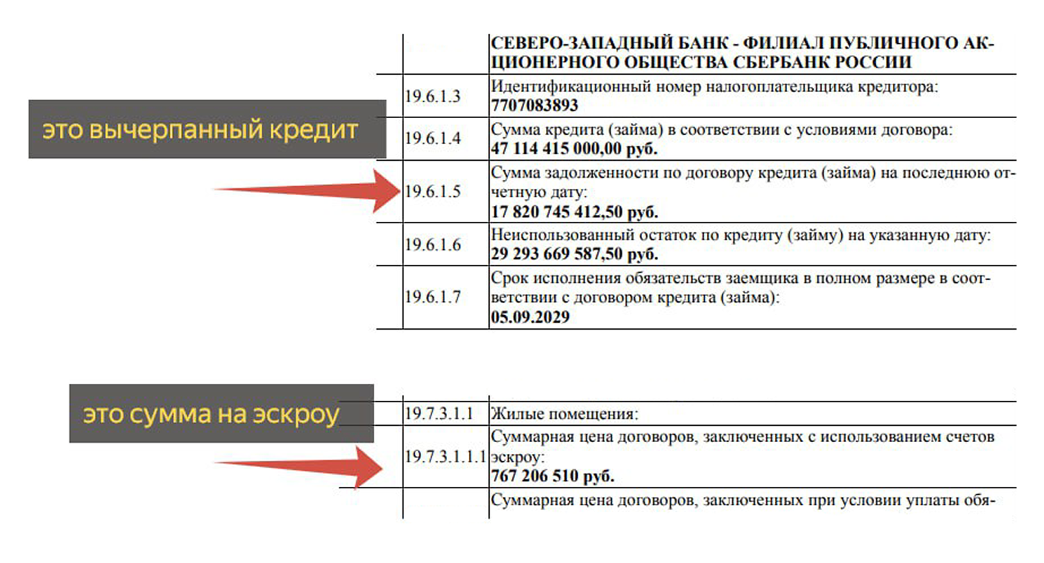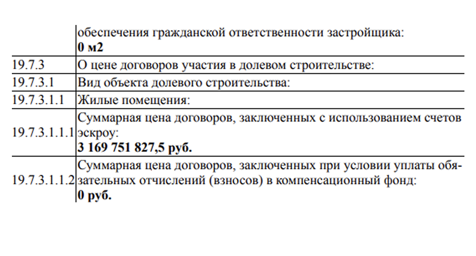 - 19.7.3.1.1.1 — сумма на эскроу по квартирам. Плюсуйте суммы по нежилым и машино-местам.
