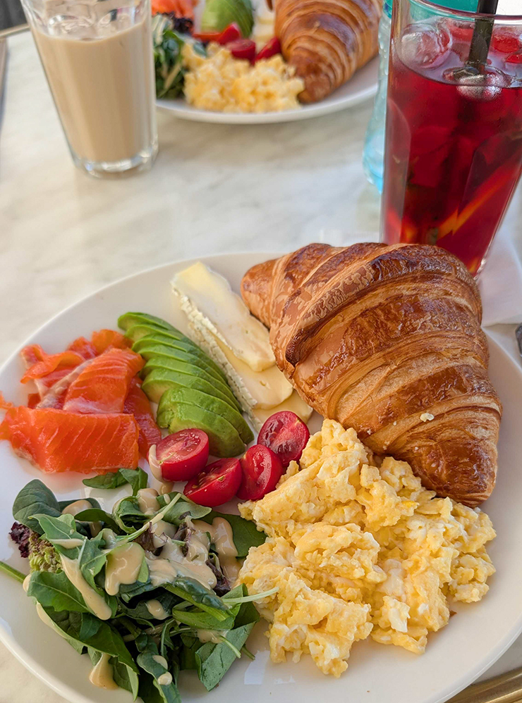 10:20. Приехал в кафе, где мы с коллегами часто обедаем. Но не в грузинское. Тут еще есть завтраки, которые я не пробовал. Беру сырники с маком, скрэмбл с сыром и черный чай с лимоном. −157 895 UZS (1 057 ₽)