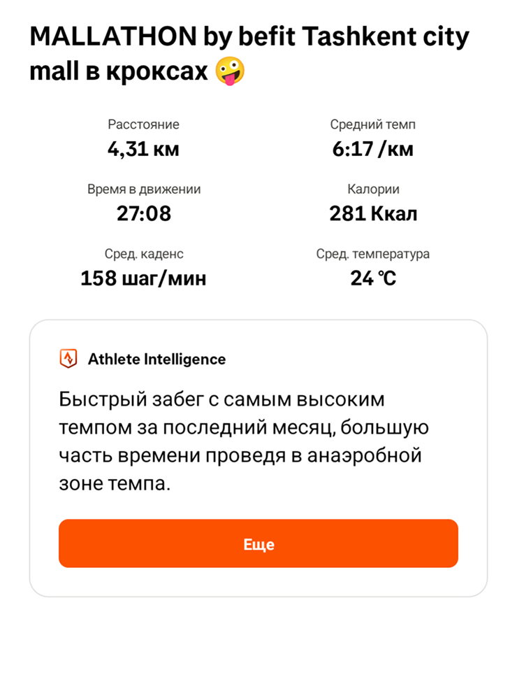 10:27. После пробежки немного погуляли в парке у ТЦ, зашли позавтракать. −110 000 UZS (737 ₽)