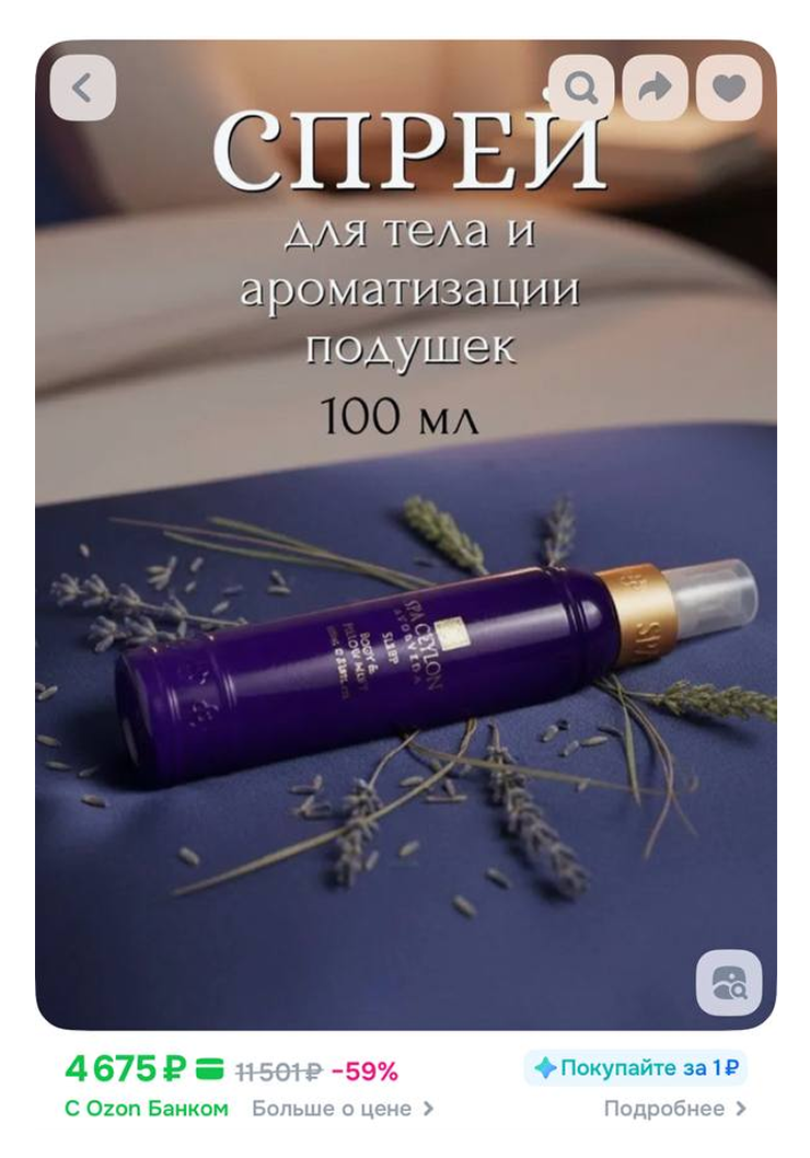 22:48. Ужасно вырубает, пора спать. Перед сном обычно использую специальный ароматический спрей для подушки, это помогает крепче спать. Проверяла уже несколько раз и по самочувствию, и по показателям сна на часах. Когда-то мне подарили спрей Spa Ceylon, и он мне очень зашел, сейчас пополняю запасы сама.