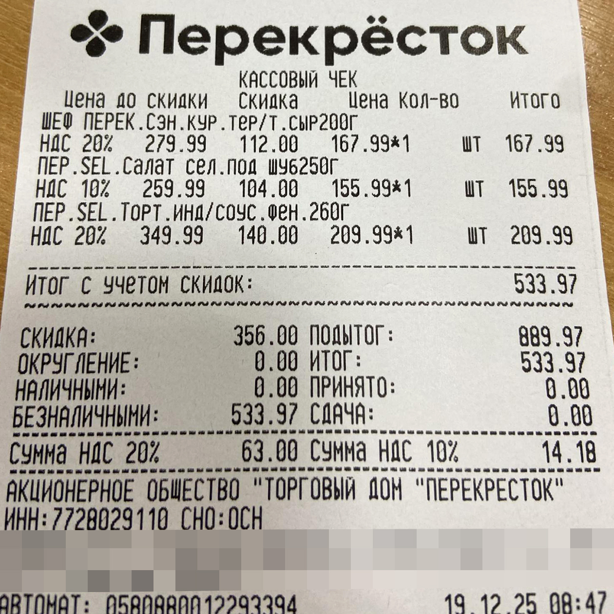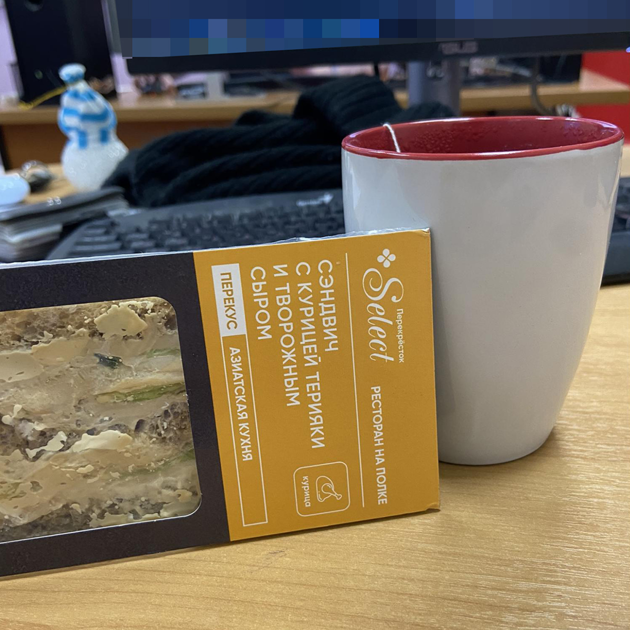 08:42. Иду в магазин, сегодня питаюсь готовым хрючевом. Покупаю сэндвич, какие-то макарошки и селедку под шубой. −534 ₽