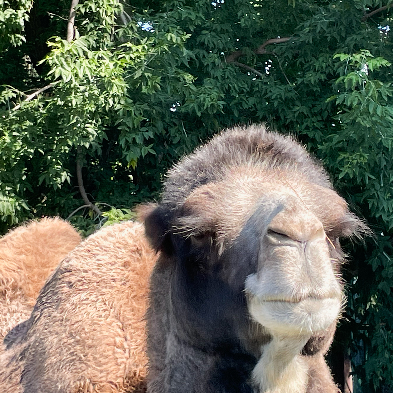 10:20. Оплачиваю билеты: взрослый — 200 ₽, детские — по 150 ₽. Нас встречают гуси, козы, кролики, лебеди, верблюд, олень, песцы, еноты, обезьяны, лисы и много кто еще. Много восторга и смеха! −500 ₽