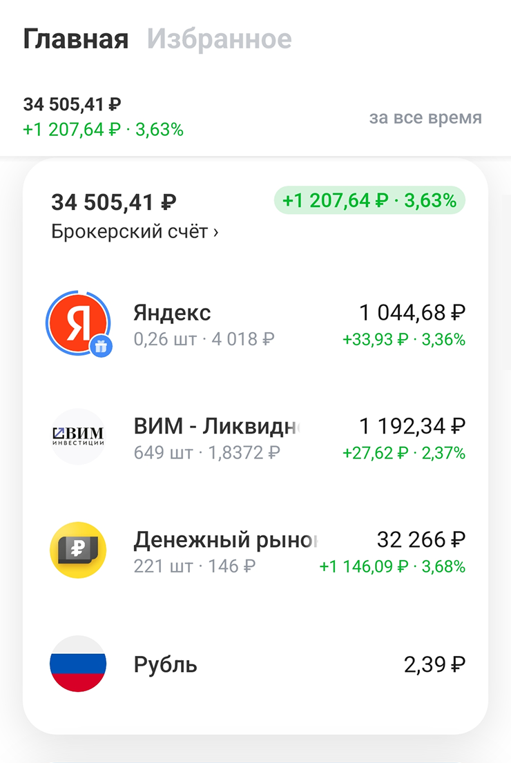 Около 1 500 ₽ в месяц выходит в виде кэшбэка и процентов по счетам. Дивиденды и купоны мизерные и приходят на инвестиционные счета.