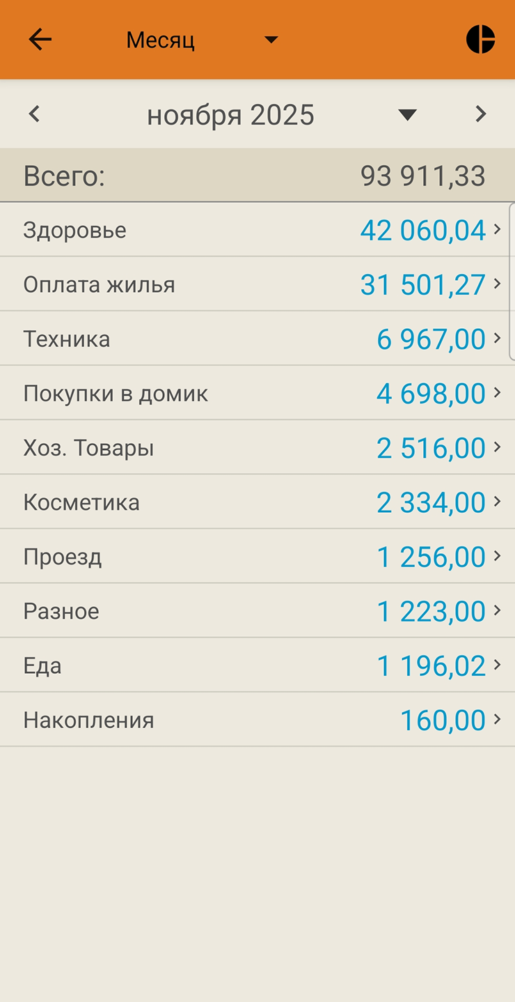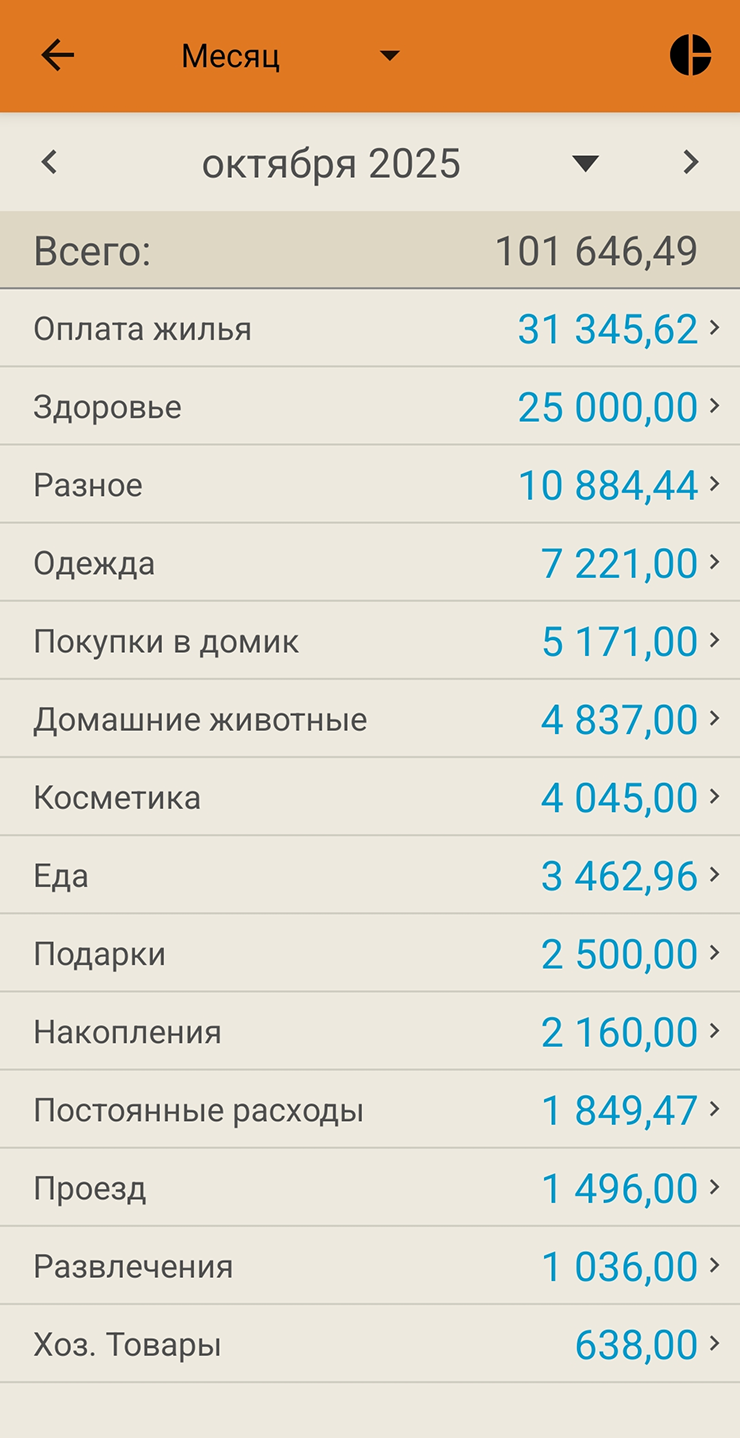 Родители: какую-то фиксированную сумму не перевожу. Иногда что-то им покупаю, но записываю эти расходы в свои категории трат.
