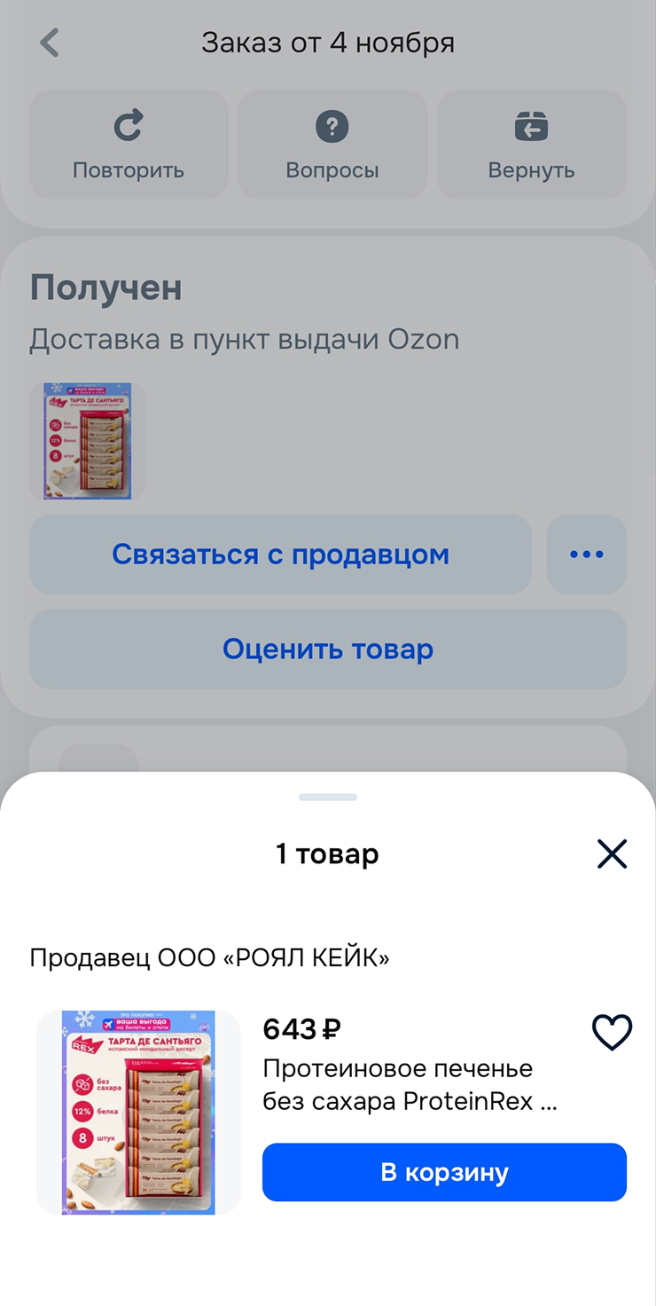 19:20. Забираем заказы из Ozon: протеиновые печеньки, грунт для цветов, фильтры для фонтана кошек, опору для цветов. Все оплатили заранее.