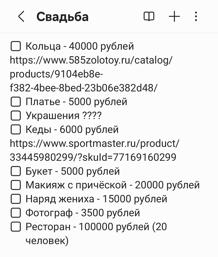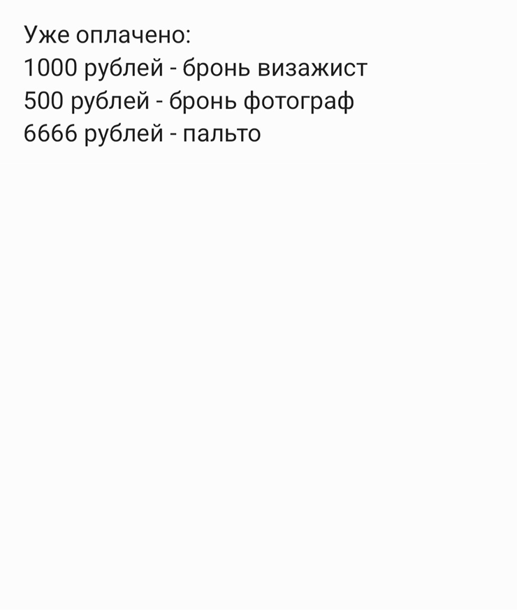 - Свадьба — 6 000 ₽. Переводим деньги на этот счет вместе с парнем. Уже потратили около 8 000 ₽. А общий бюджет на свадьбу — 200 000 ₽. Чтобы к марту собрать нужную сумму, нам необходимо совместно откладывать по 60 000 ₽ в месяц. Пока рассчитываем на премии — годовые и за разработку продукции. С зарплаты у меня получится откладывать около 5 500 ₽, парень планирует закидывать по 10 000 ₽.