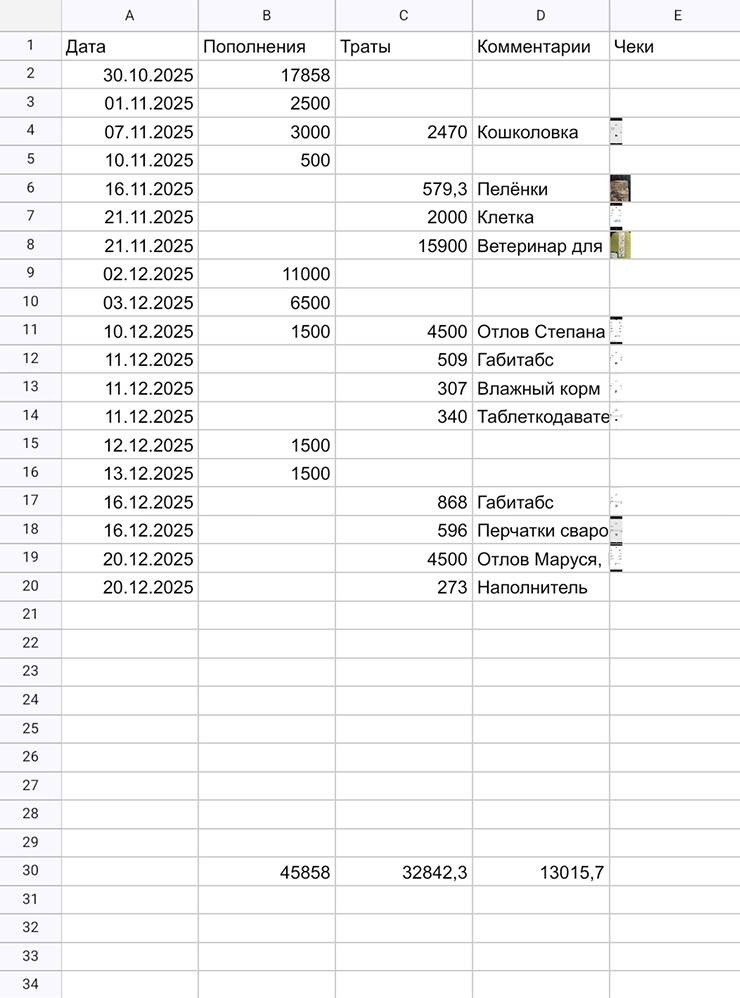 Животные: 5 000 ₽. Еще столько же скидывает парень, так как я закупаюсь всем необходимым для кошек.