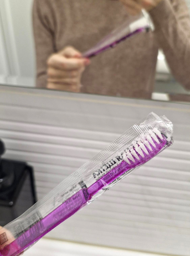 15:08. Прибежала в клинику. Пью воду из кулера. Прошу у администратора зубную щетку, потому что забыла свою.