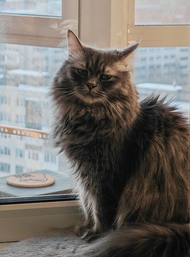 Немного потупил в телефон. Кот почувствовал, что я проснулся, и запрыгнул на кровать ласкаться. Погладил его и окончательно поднялся.