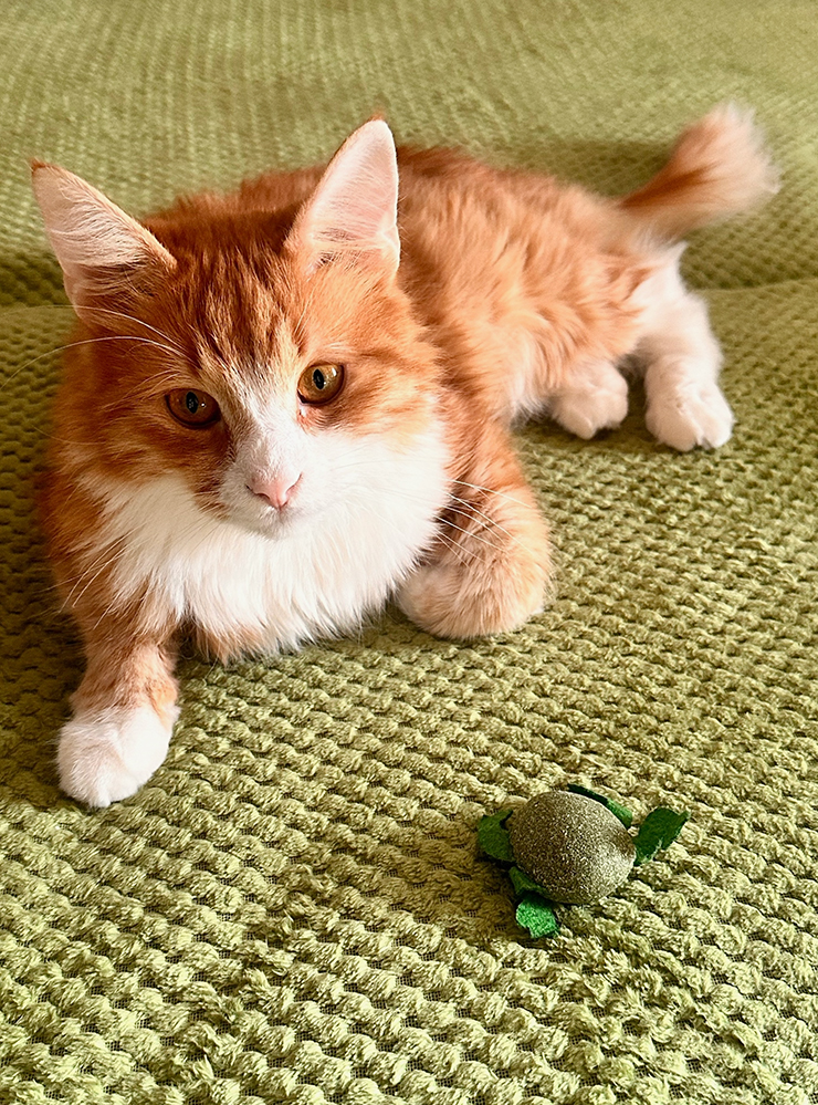Персик попал к нам совершенно случайно. То ли его подкинули, то ли он сам пришел к ветклинике, где работает муж. Там его пролечили от панлейкопении, потом от лишая. Никто не хотел его забирать: пацан-то на всю жизнь остался с проблемным ЖКТ, плюс уже был подростком, а не сладеньким котенком. Но муж не устоял и под Новый год принес Персика домой.