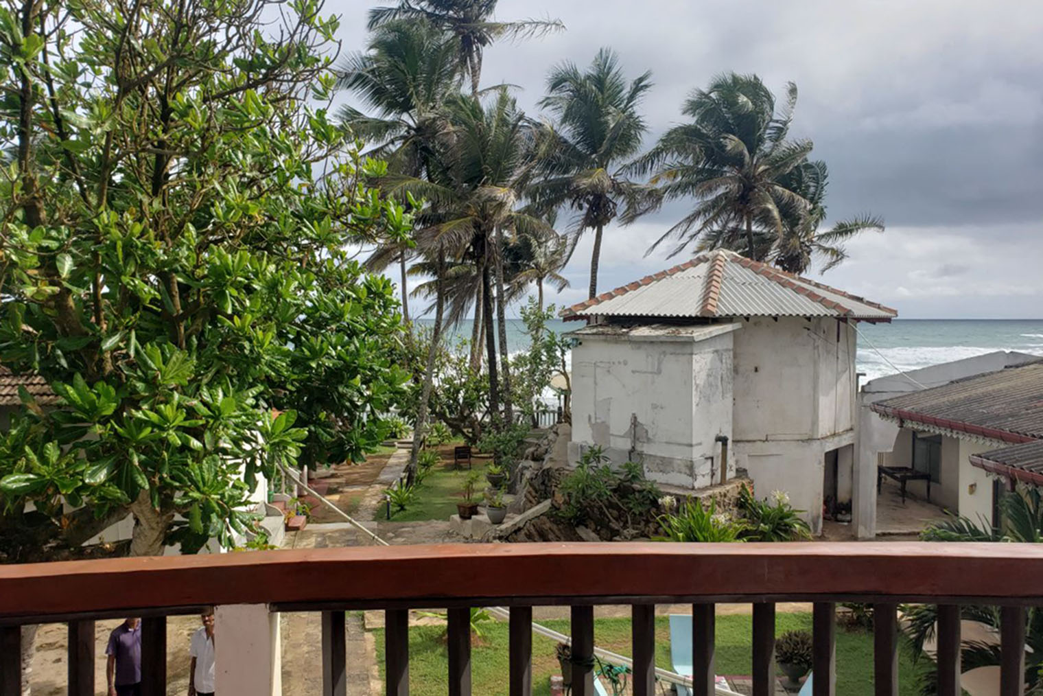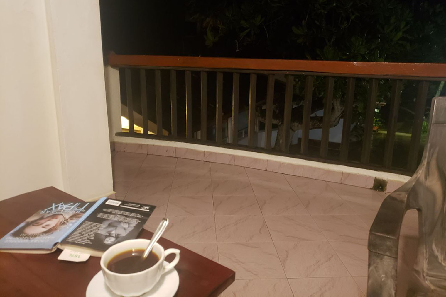 Мой балкон выходил на океан. Сидеть там перед сном с книжкой и ароматным кофе и читать под шум прибоя было божественно. Перед отъездом на Шри-Ланку меня много пугали комарами и плохим питанием. Но комаров на балконе не было: их сдувало прибрежным бризом. Единственное насекомое, которое прилетело ко мне за все время отдыха, врезалось в стенку и упало мне на голову, — жук-носорог. Я потом бережно отнесла его в траву.