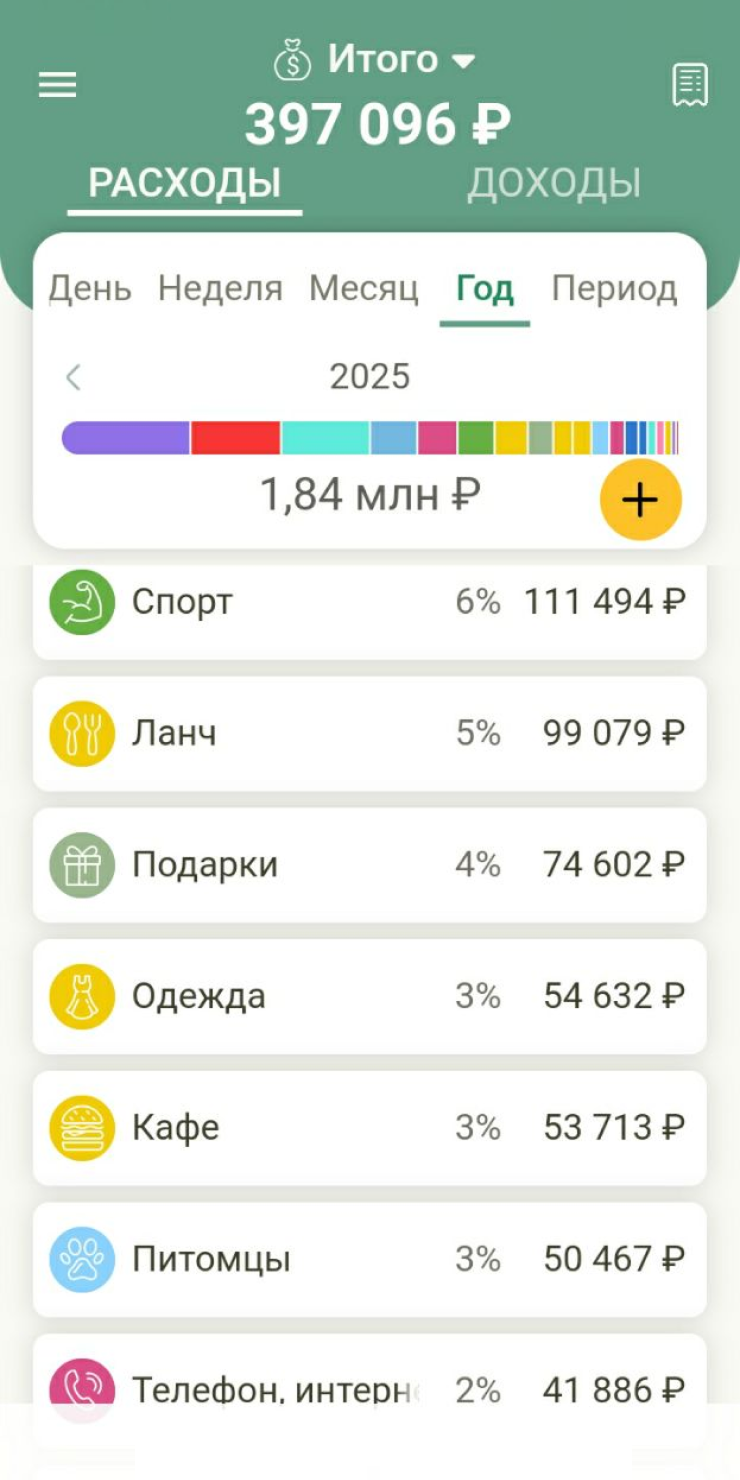 Транспорт: покупаю годовую «Тройку» за 22 650 ₽. Иногда вызываю такси — обычно в аэропорт или обратно ночью и в поездках. В этом году на такси потратила 978 ₽ — ездила только в Казани и Астане.