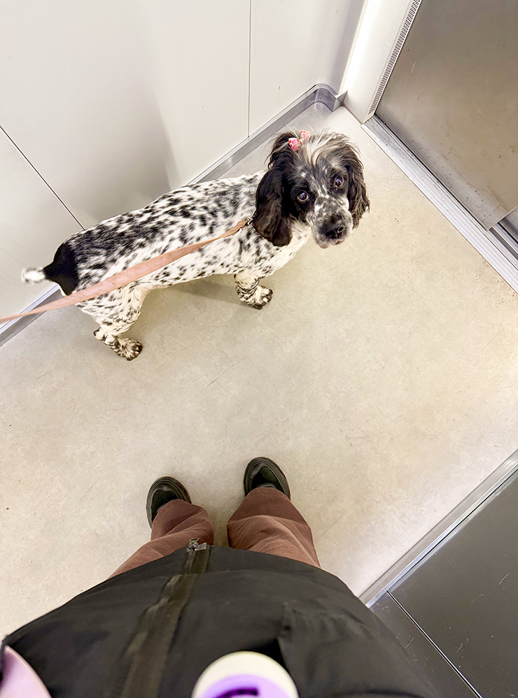 Очень нравится возвращаться — дома чисто, уютно и спокойно. Булочка радостно встречает нас, и К. выходит с ней на небольшую прогулку — к нашему приезду няня уже с ней погуляла и поиграла.