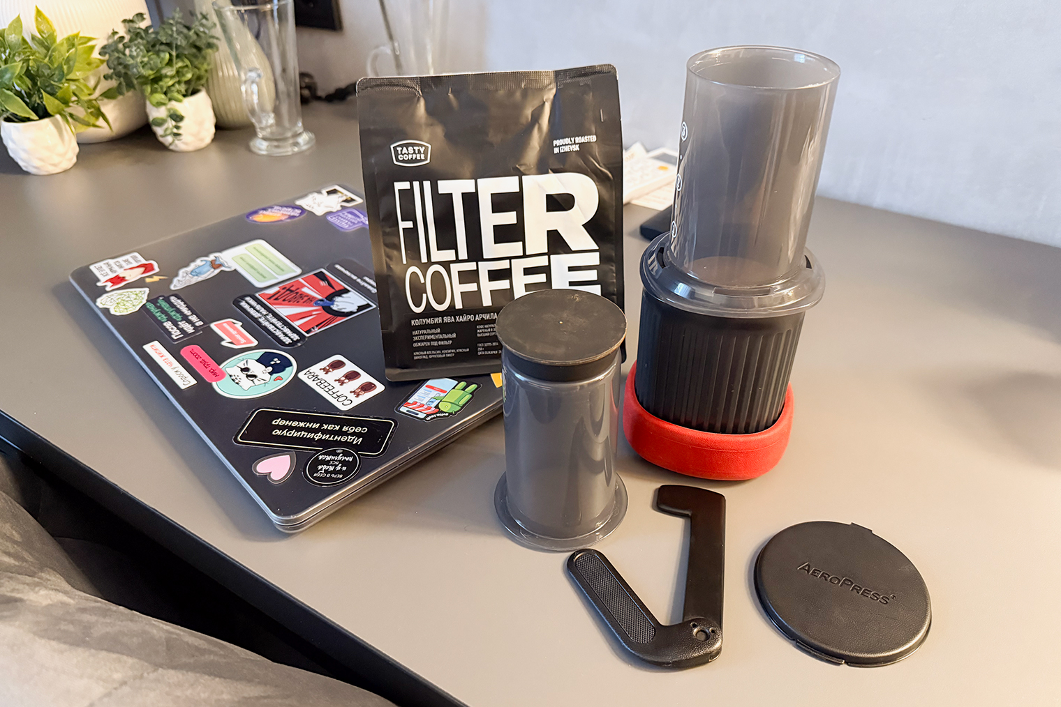 Доставками еды почти не пользуемся, кофе с собой тоже почти не берем. Заказываем раз, максимум два в месяц роллы, когда собираемся с друзьями или просто хотим себя побаловать. Мне не очень нравится вкус еды из большинства доставок, поэтому не хочу тратить на них деньги. Кофе варим дома в турке: заказываем разные вкусы от Tasty Coffee, и другой кофе кажется нам невкусным. Осенью, когда выбираемся утром в выходные в парк погулять с собакой, можем взять по порции кофе и позавтракать.