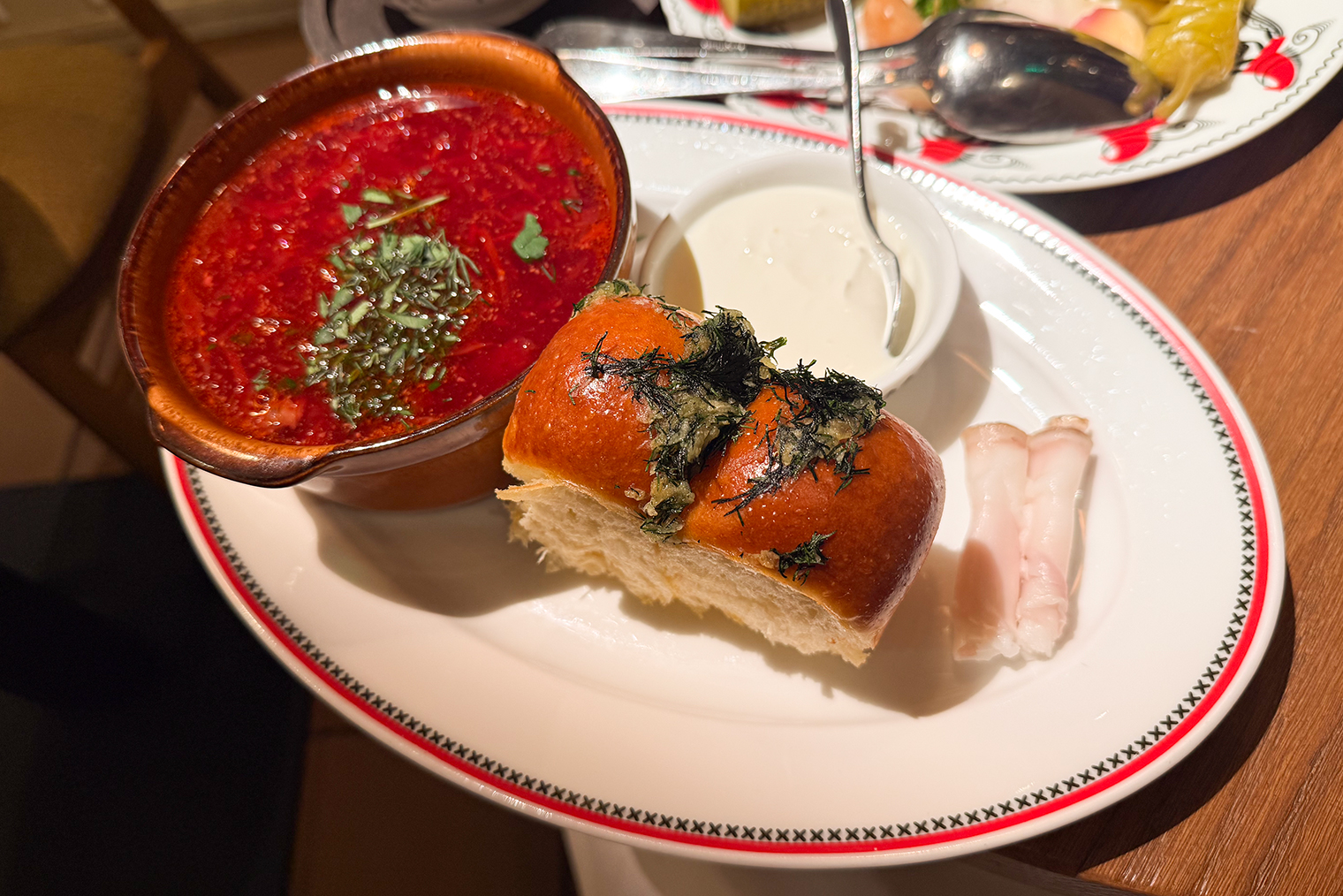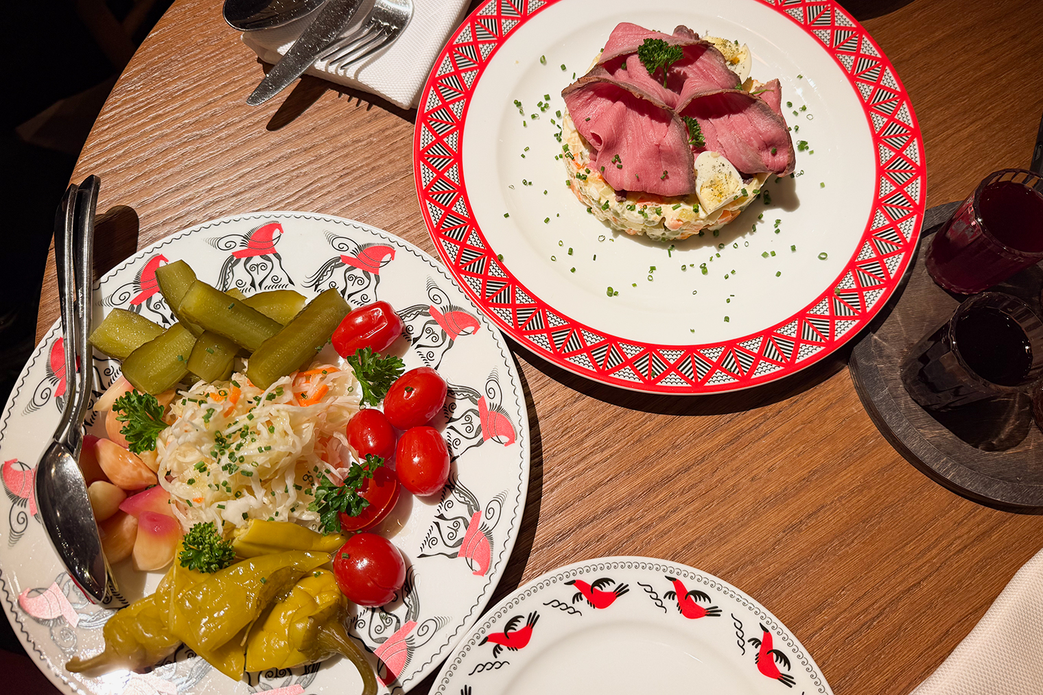 21:00. Приходим в ресторан Kalinka в центре города. К. угадал с выбором. Мы уже очень хорошо знаем вкусы друг друга и выбираем места, которые понравятся нам обоим. Да что говорить про места — даже еду из большого меню мы выбираем одну и ту же, настолько наши вкусы совпадают.