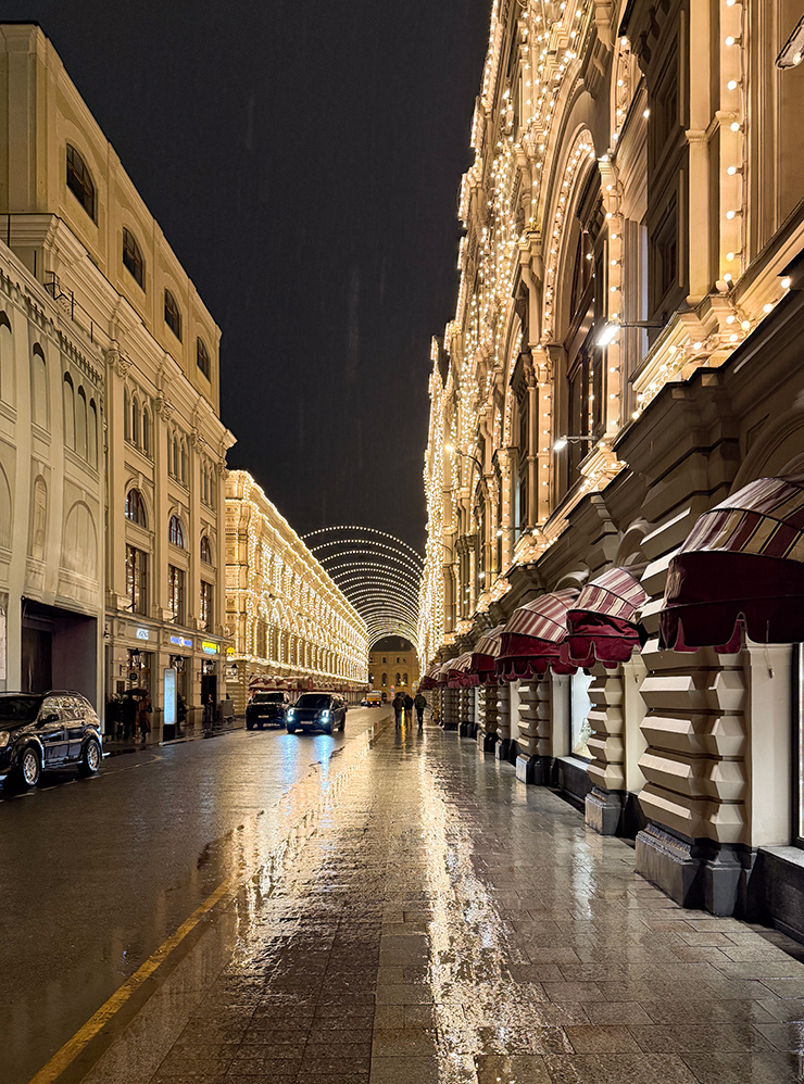 23:30. Выходим гулять по ночной Москве. На улице льет дождь, но решаем все равно немного пройтись и подышать воздухом.