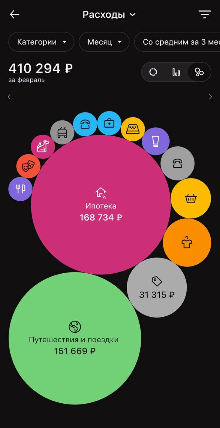 Его доход: за год все очень сильно поменялось. Его зарплата — 350 000 ₽ после вычета налогов. Премии в компании есть, но К. еще не успел их получить. Пет-проекты приносят ему еще около 400 000 ₽ до вычета налогов — он платит 6% как ИП, на руки получается около 376 000 ₽. К. распоряжается деньгами как посчитает нужным, оплачивает почти все наши расходы и путешествия. Копит на красивое предложение по моему ТЗ 😀