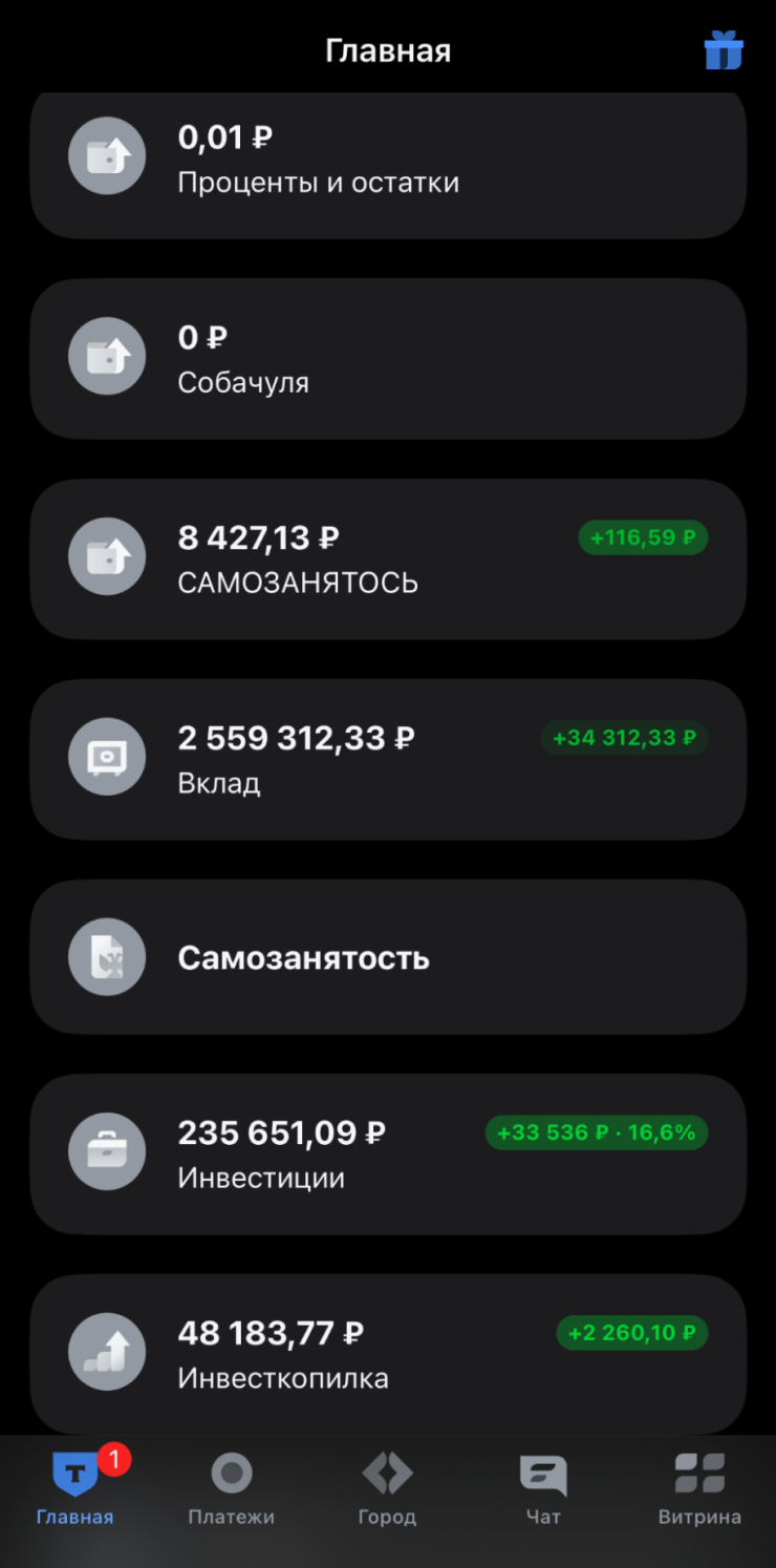 Инвестиции: примерно 283 000 ₽ в Т-Инвестициях. Все так же не строю никаких планов на эти деньги, они просто лежат. Инструмент инвестиций мне не очень удобен, и я не хочу вкладывать в них большие суммы, которые жалко будет потерять.